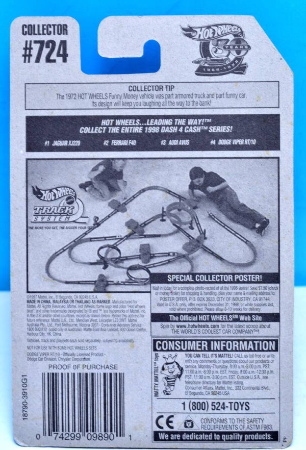 即決 未開封 MATEL マテル Hot Wheels ホットウィール 1997年 ダッジ  バイパー RT/10 #724