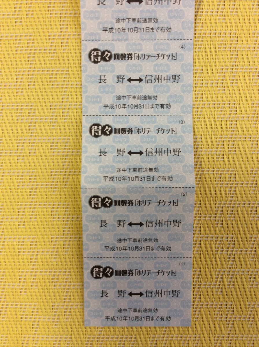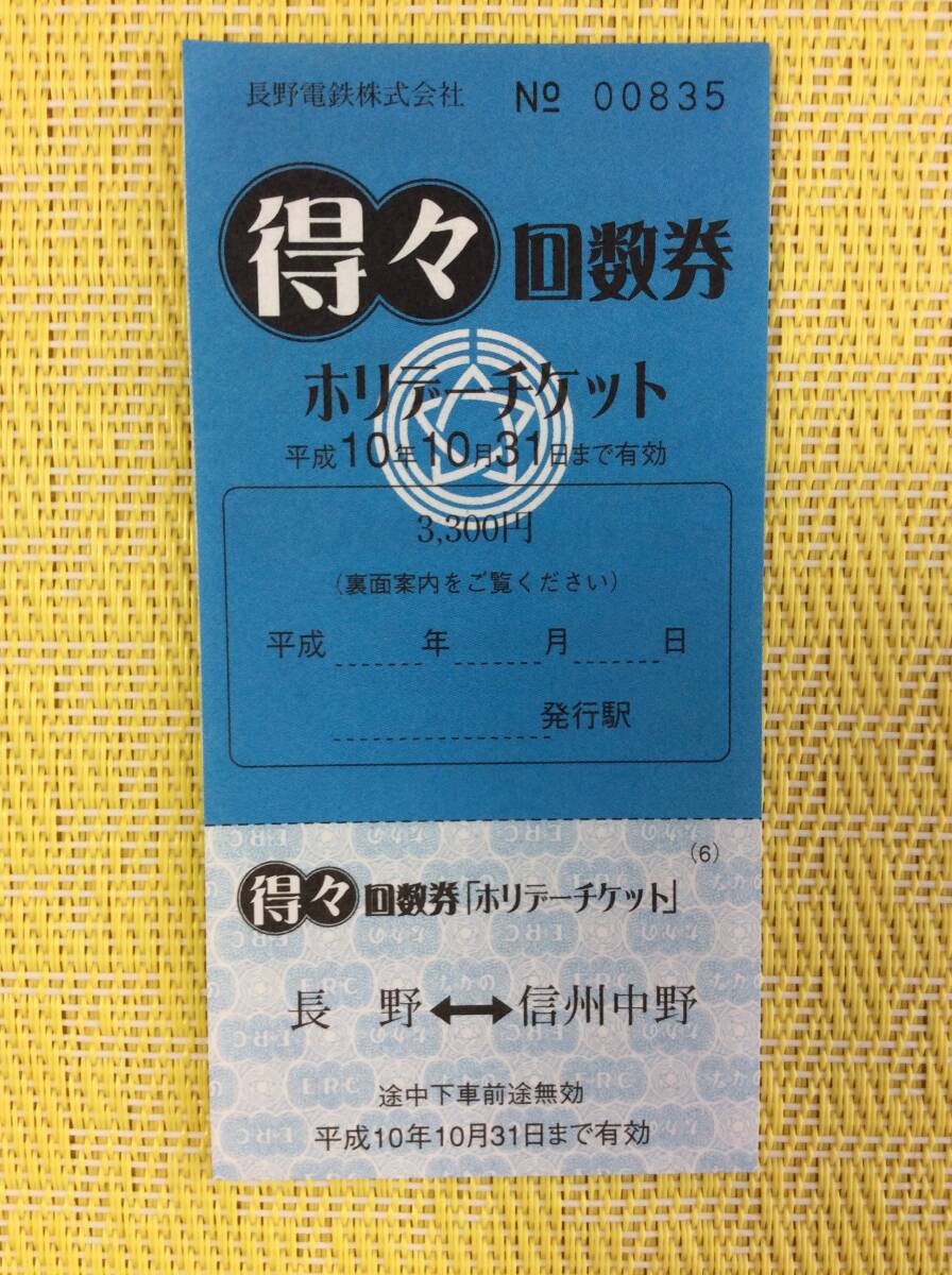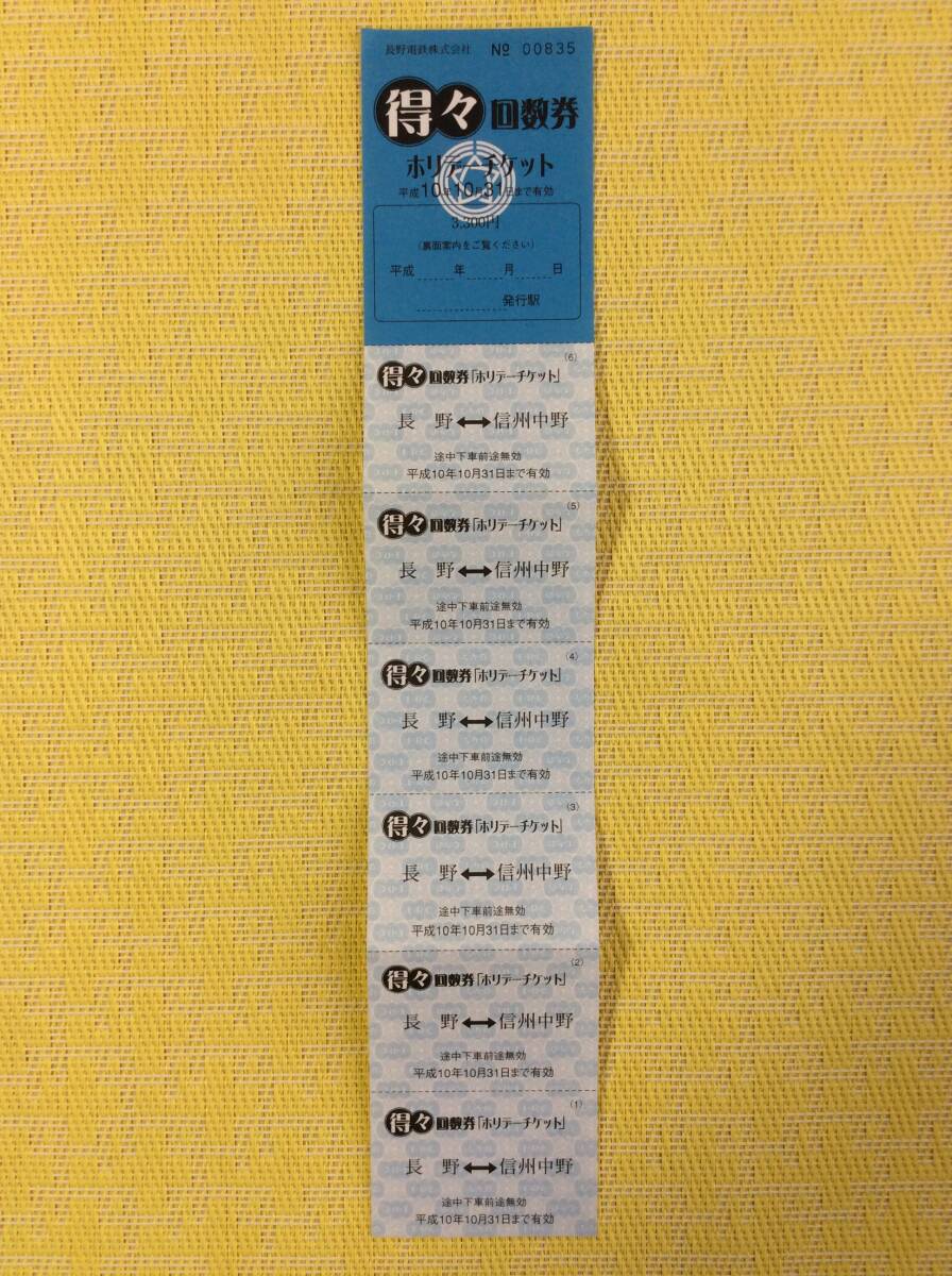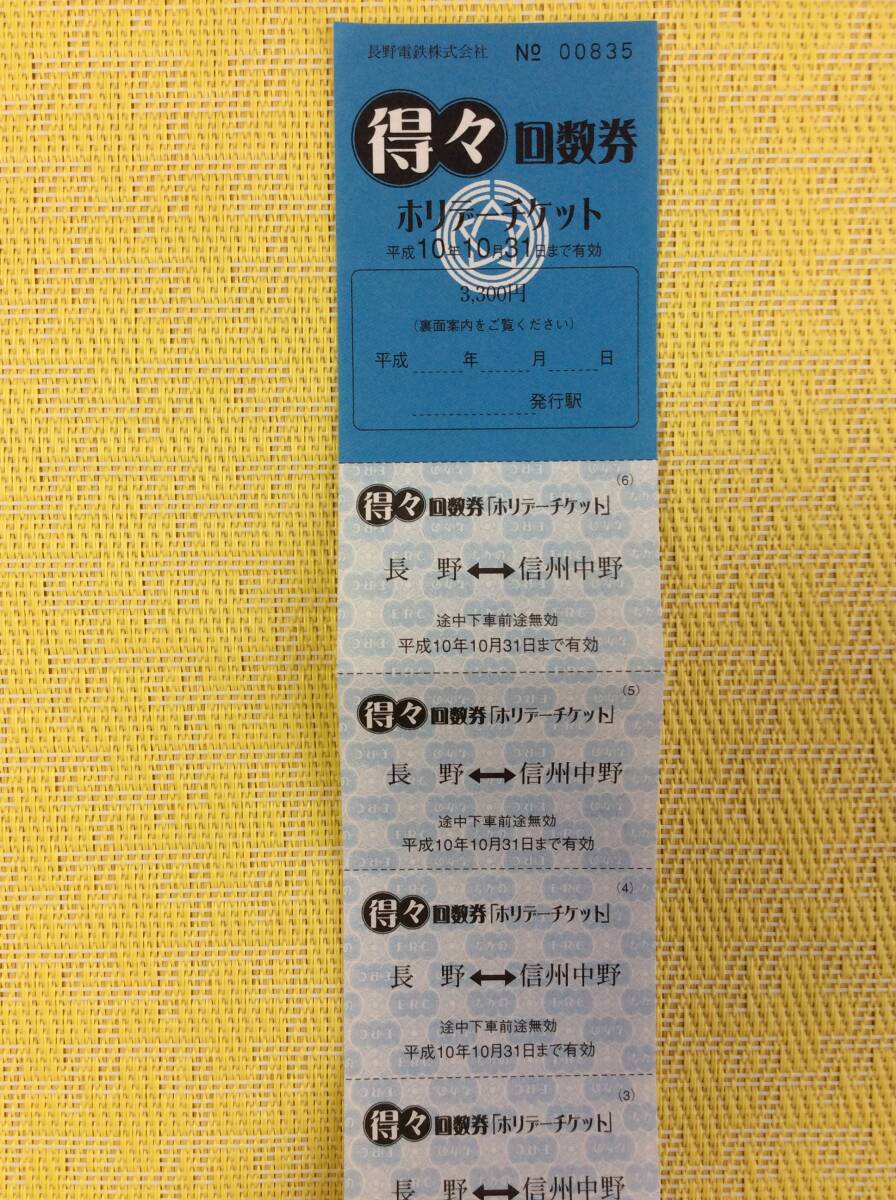 長野電鉄 得々回数券 ホリデーチケット 長野ー信州中野 常備 平成10年