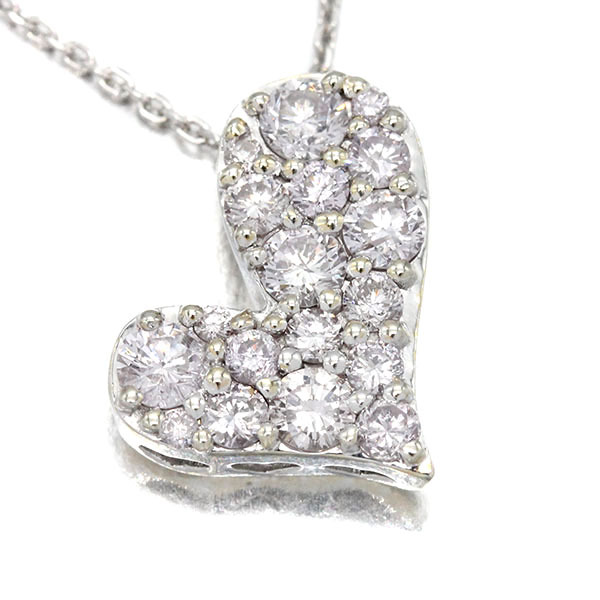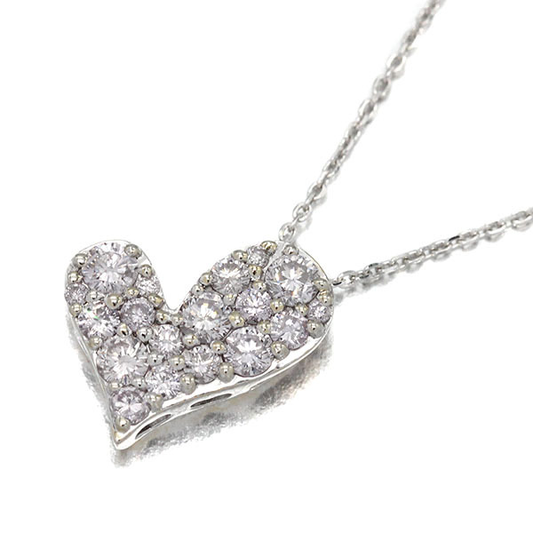 K18WG ハートモチーフ ピンクダイヤモンド ネックレス 44cm D1.00ct ホワイトゴールド750 宝石 ジュエリー アクセサリー レディース