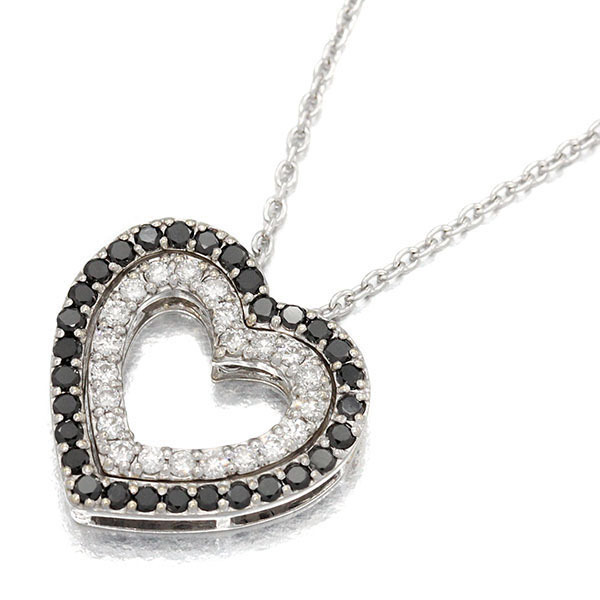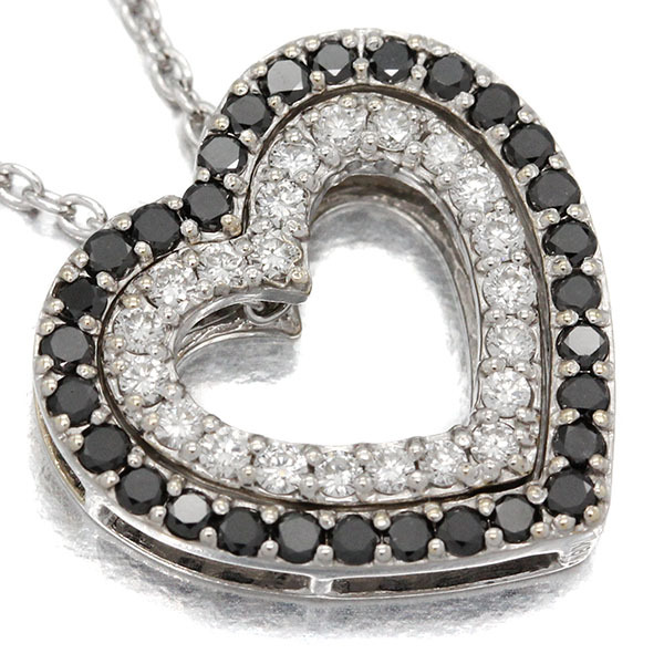 K18WG ハートモチーフ ブラックダイヤモンド ダイヤモンド ネックレス 45cm BK0.27ct D0.22ct ホワイトゴールド750 宝石