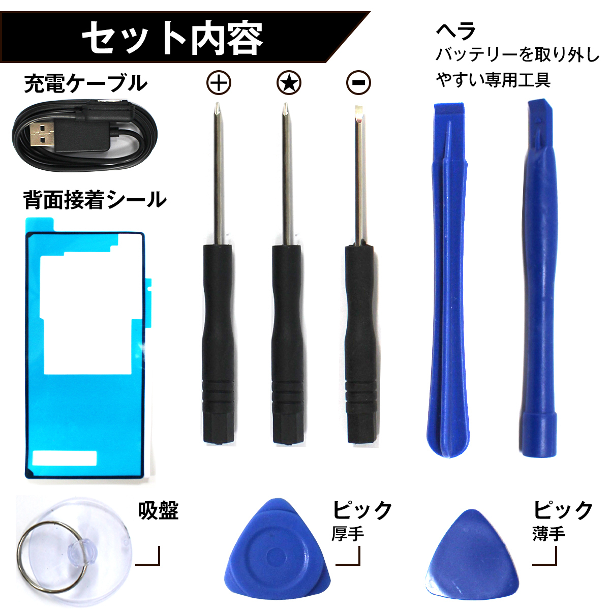 ◆セット内容:バッテリー本体、交換工具、背面接着シール
