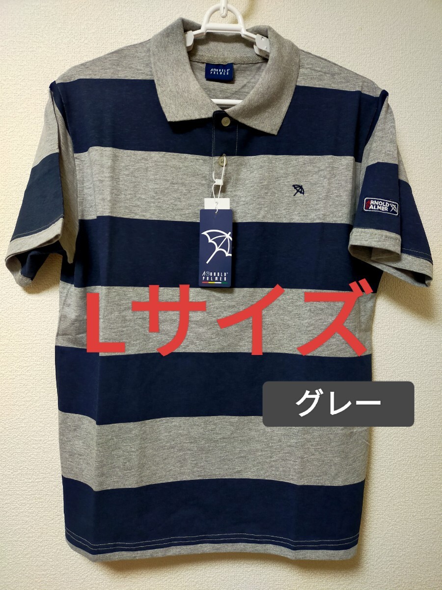 ◆新品・未使用 Lサイズ!送料無料!即決!Arnold Palmer 半袖 ポロシャツ 灰色【刺繍ロゴ ワッペン】 メンズ ゴルフウェア カジュアル 紳士用