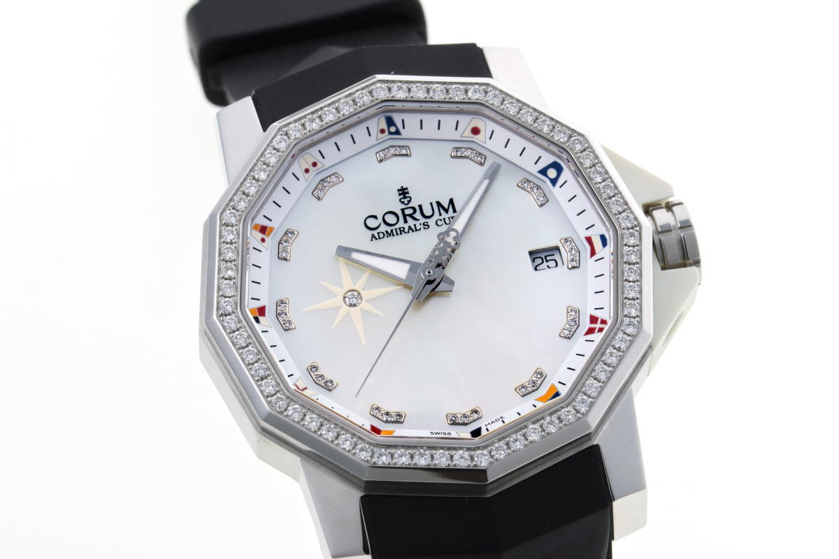 目立つダメージはありません。-コルムの機械式ラウンドウォッチ。マザーオブパールダイアル。