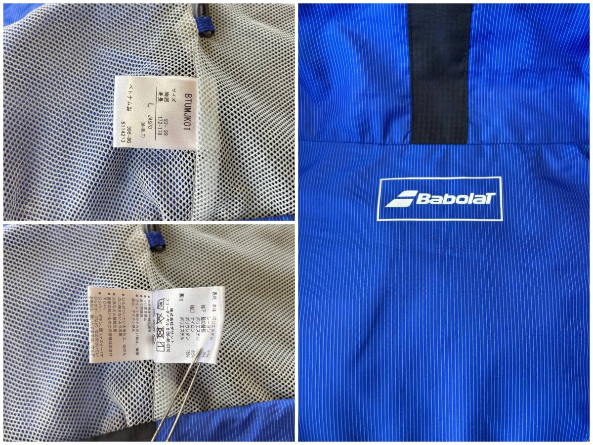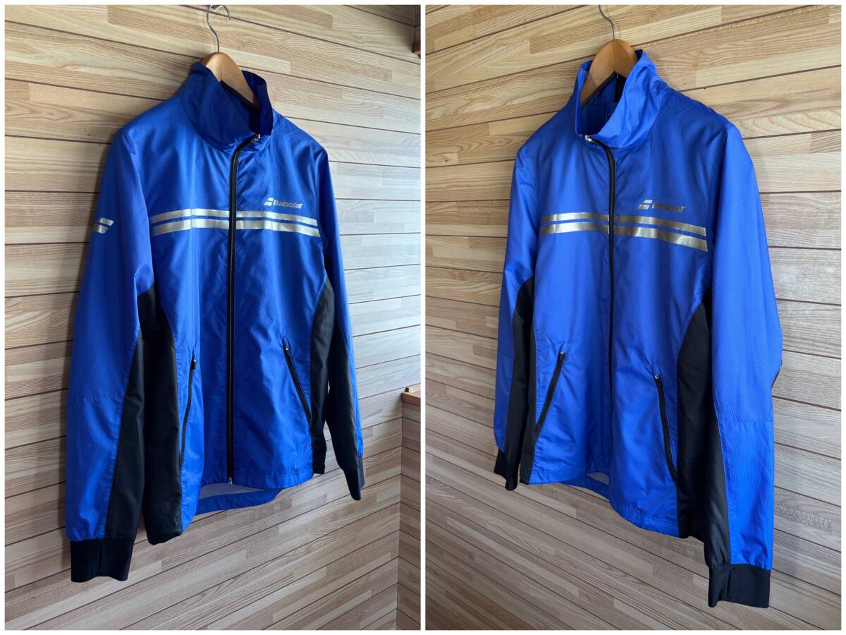 #セール★サイズ L★BABOLAT バボラ ウィンドブレーカー ジャケット 光発熱 +5℃ 長袖 ジップ ブラック 黒 ブルー 青 テニスウェア 秋 冬