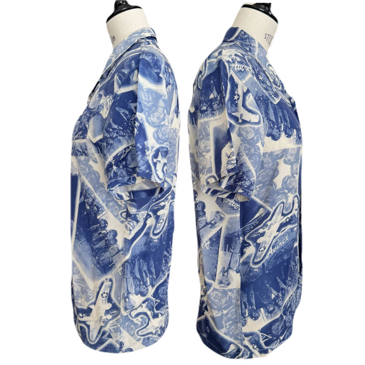 | ★ 商品名 ★ AVIREX アヴィレックス 米軍 パイロット 飛行機 フォトプリント 総柄 バンブーボタン アロハシャツ 半袖 シャツ ヴィンテージ ★ |
