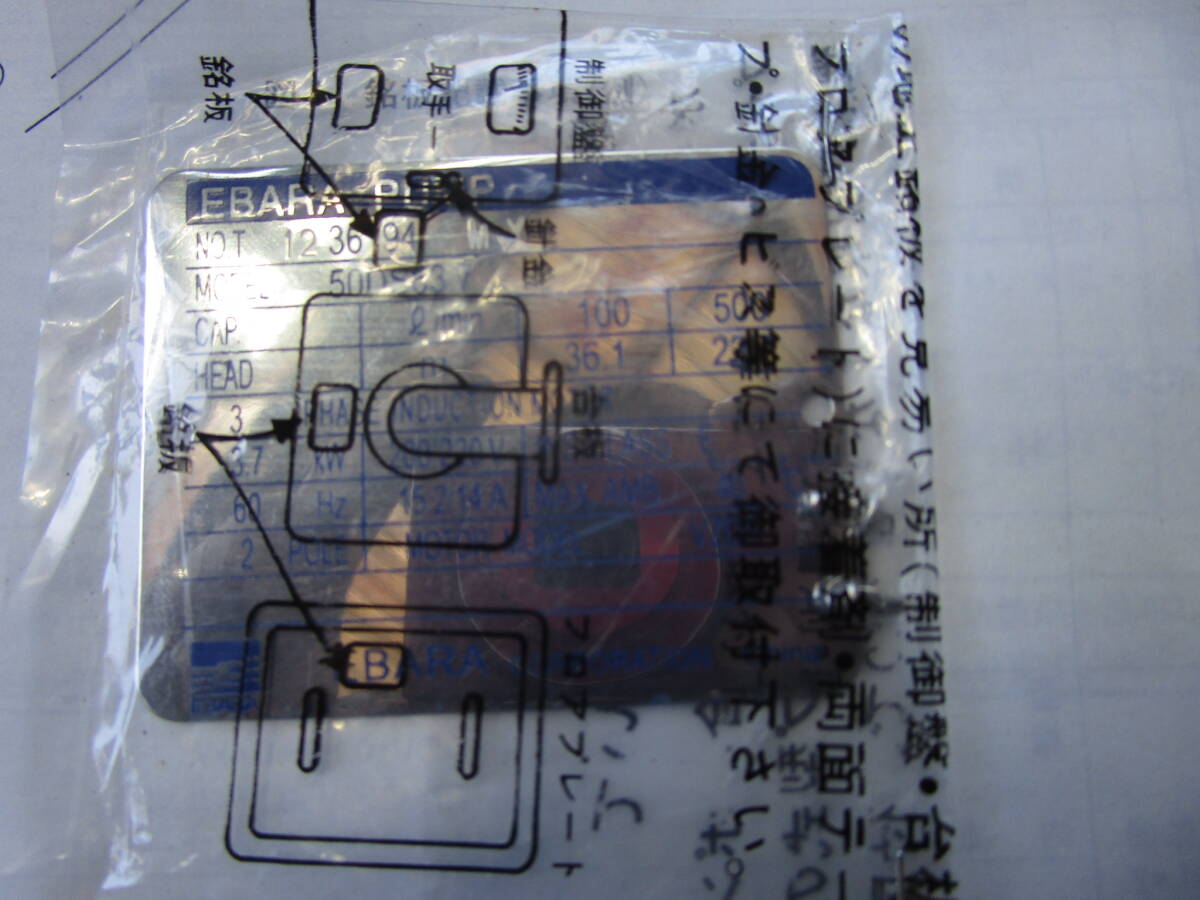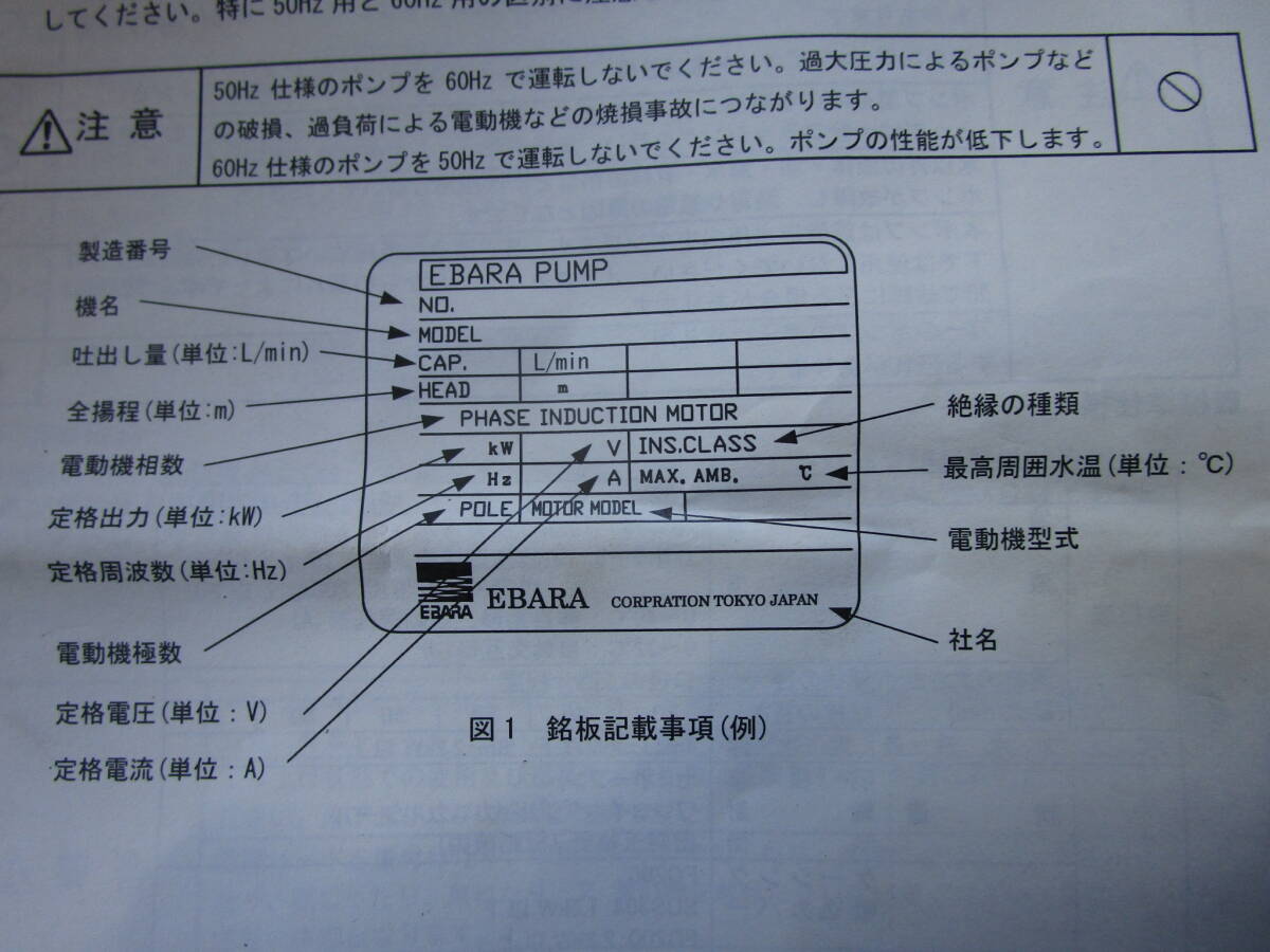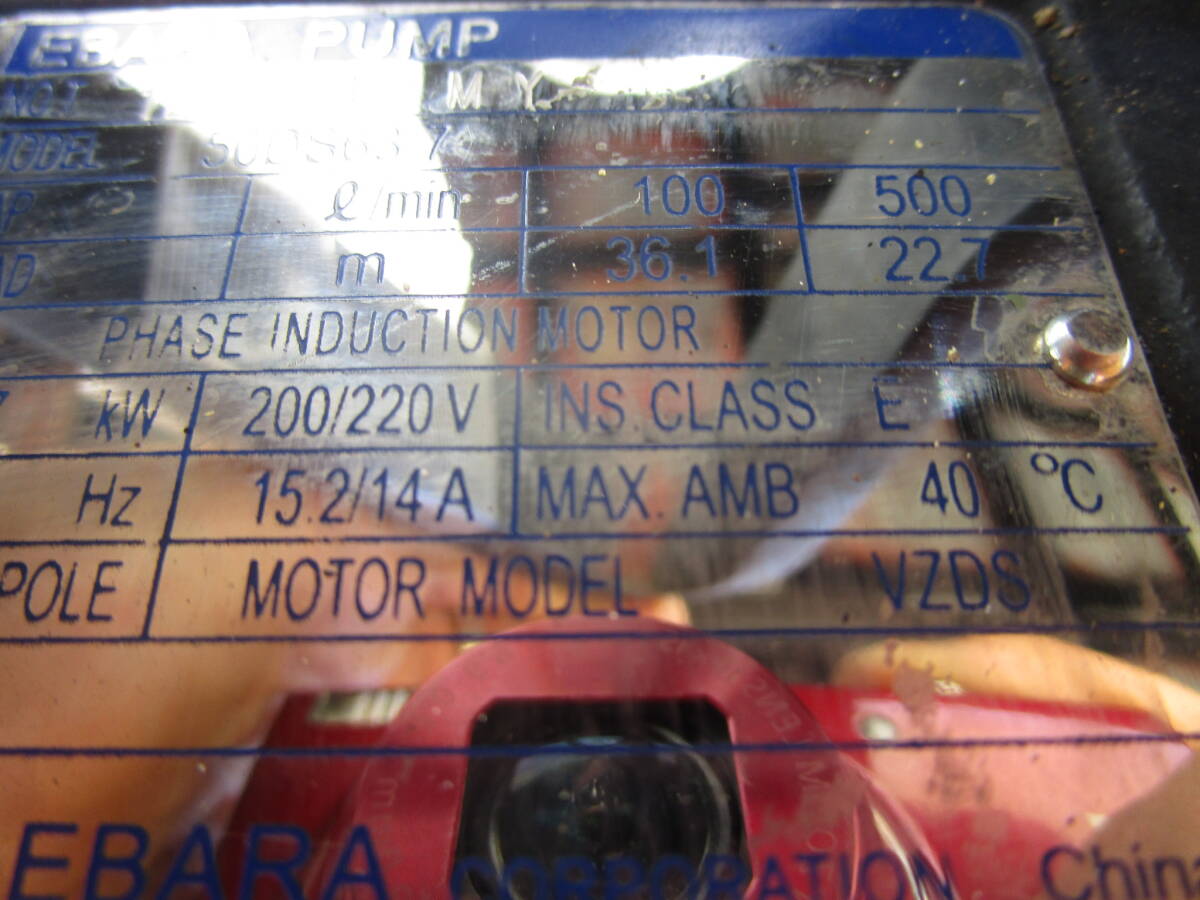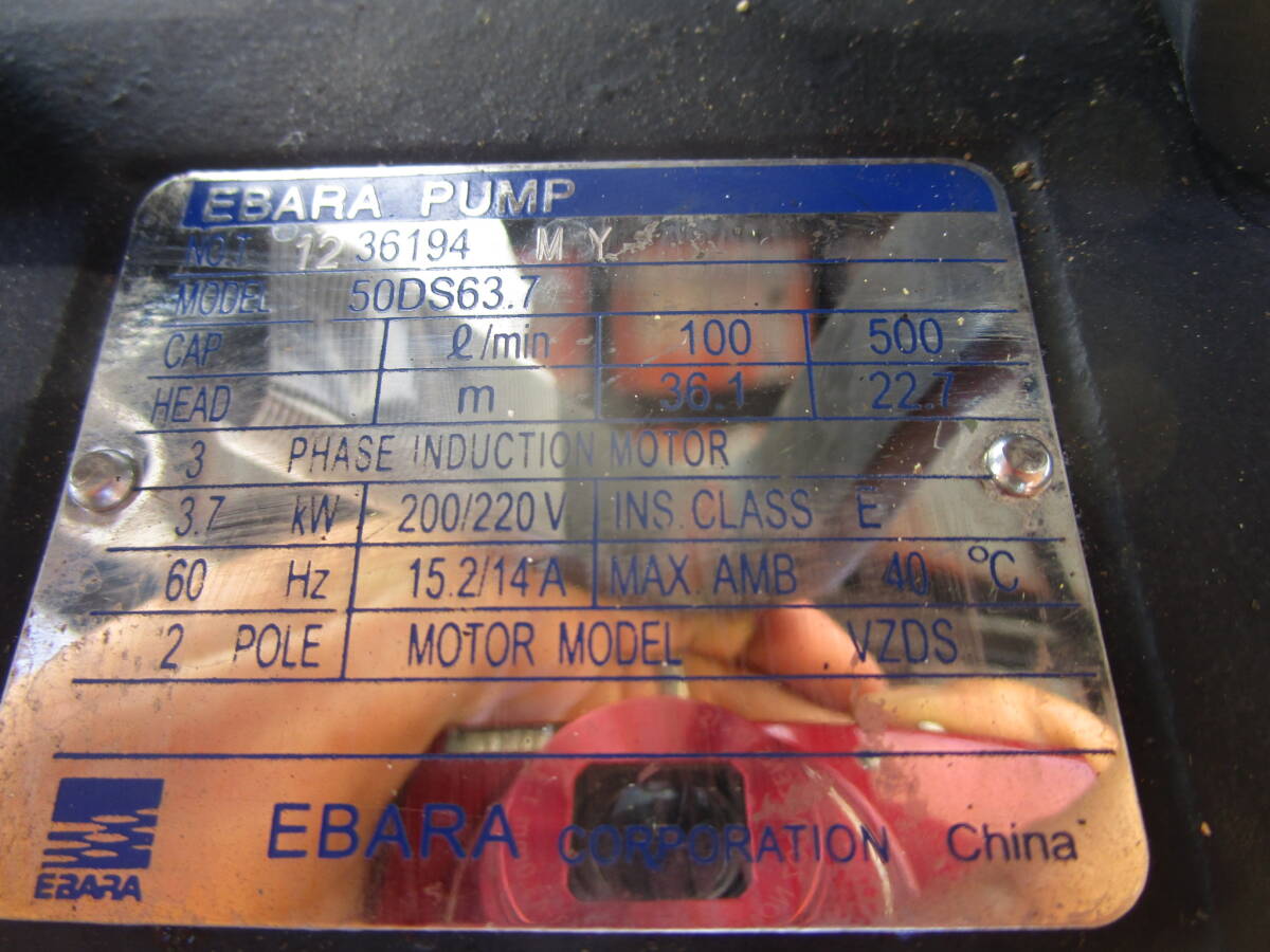 メーカーはエバラ 50DS63.7。   三相200Vの3.7Kwモーター 。 新品未使用の取説付き。