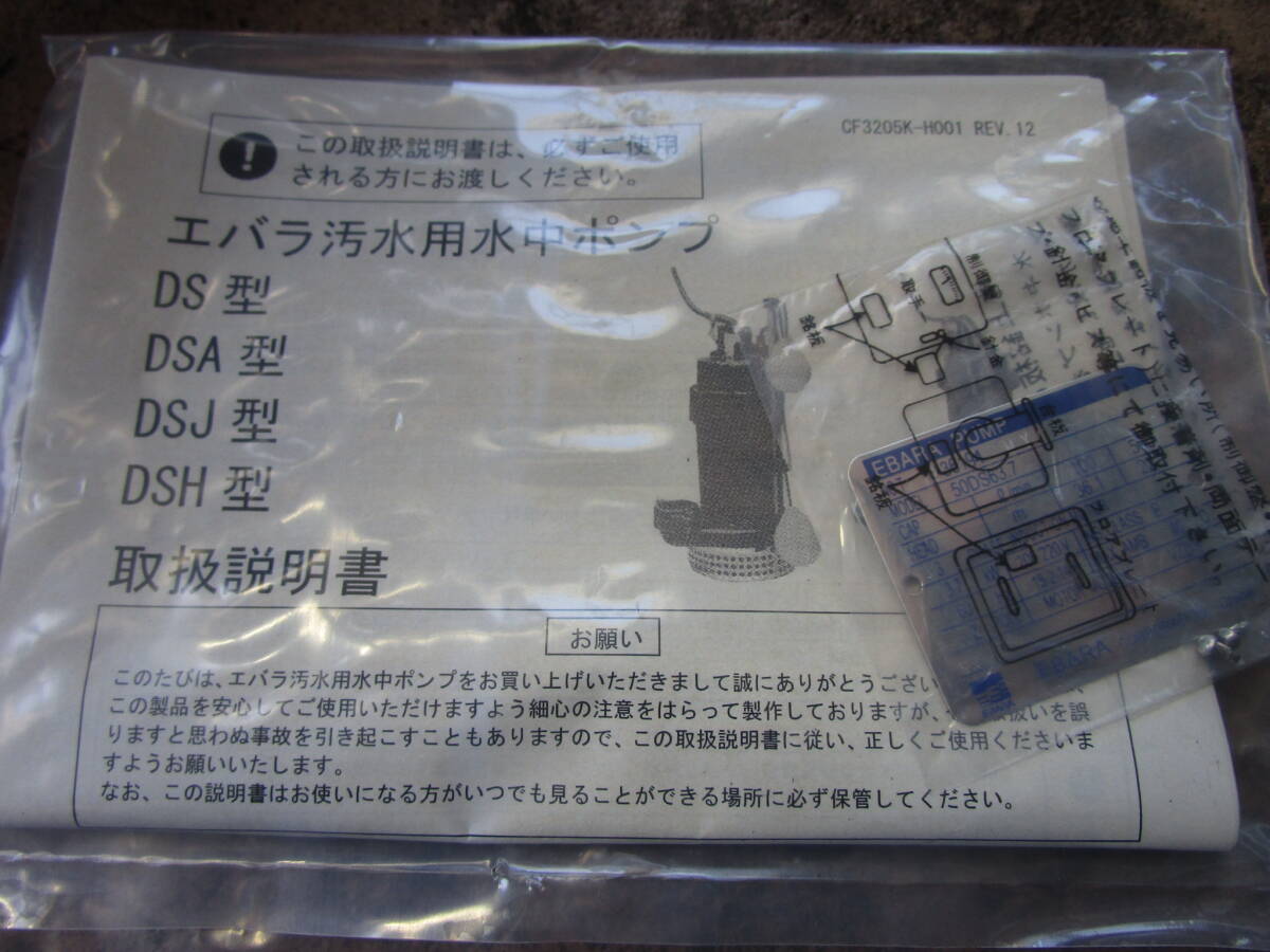 油谷 №397 新品 水中ポンプ 三相200V エバラ 50DS63.7 汚水 マンホール 大型汲み上げポンプ 3.7Kwモーター 5馬力 浄化槽 下水消泡 処理水