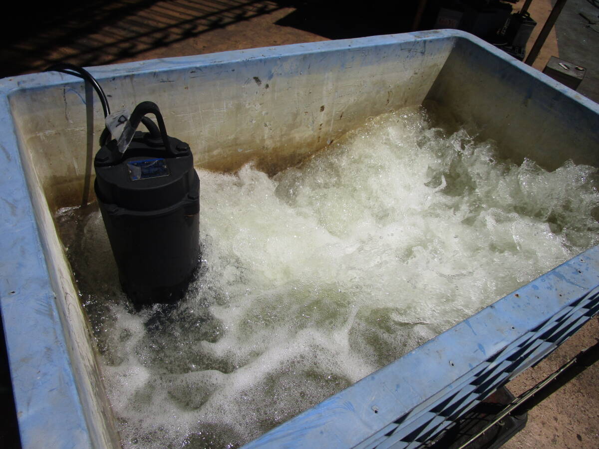 排出口にはフランジがついてないのでコイツに合わせた排出用のパイプをつないで使ってほしい。  揚程は36.1m。 そん時の吐出量は100L/min。