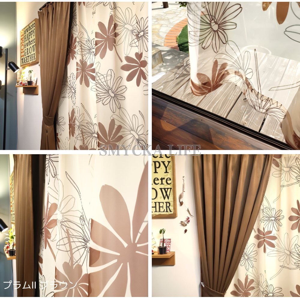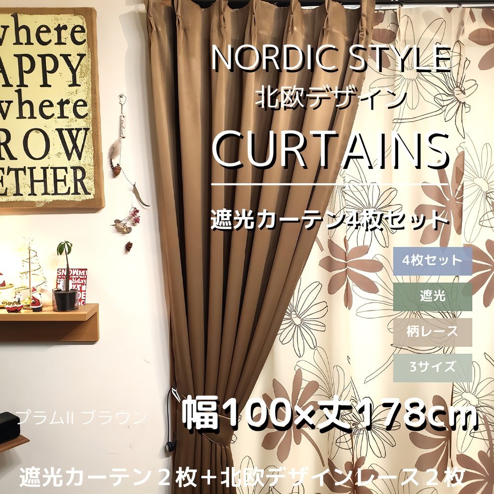 [柄/カラー] プラム/ブラウン [サイズ] 遮光カーテン:幅100×丈178㎝2枚+ レース:幅100×丈176㎝2枚の合計4枚 | ||||