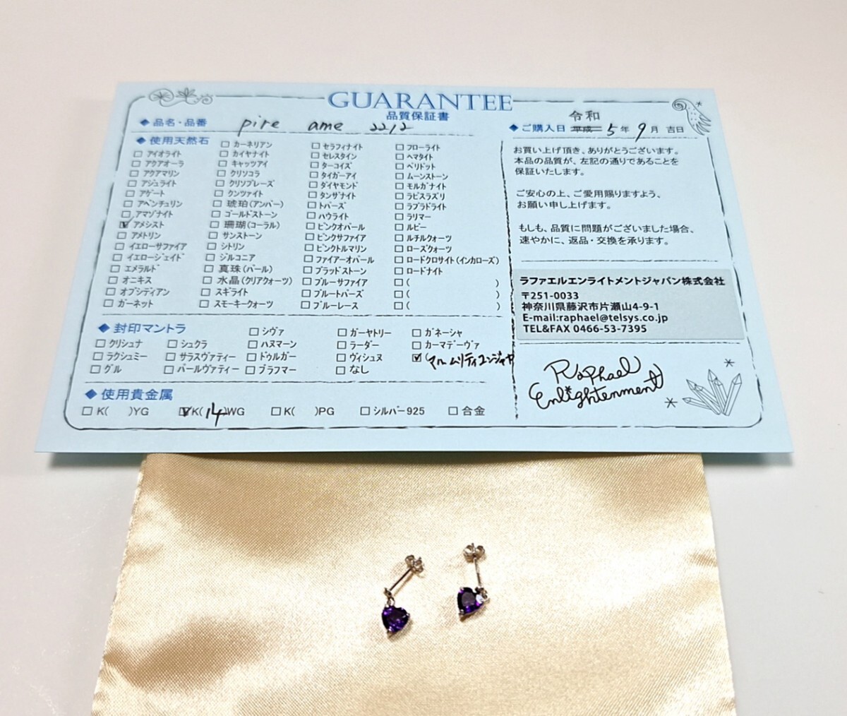K14 ホワイトゴールド アメジスト ハート ピアス 新品未使用です。