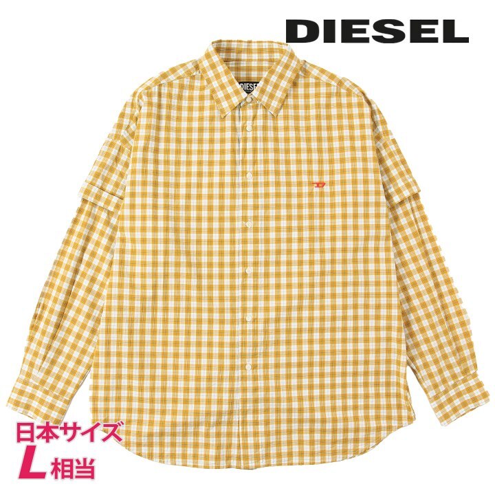 ディーゼル DIESEL 長袖コットンシャツ メンズ チェック柄 ダブルスリーブ オーバーサイズ S-DOUBLER