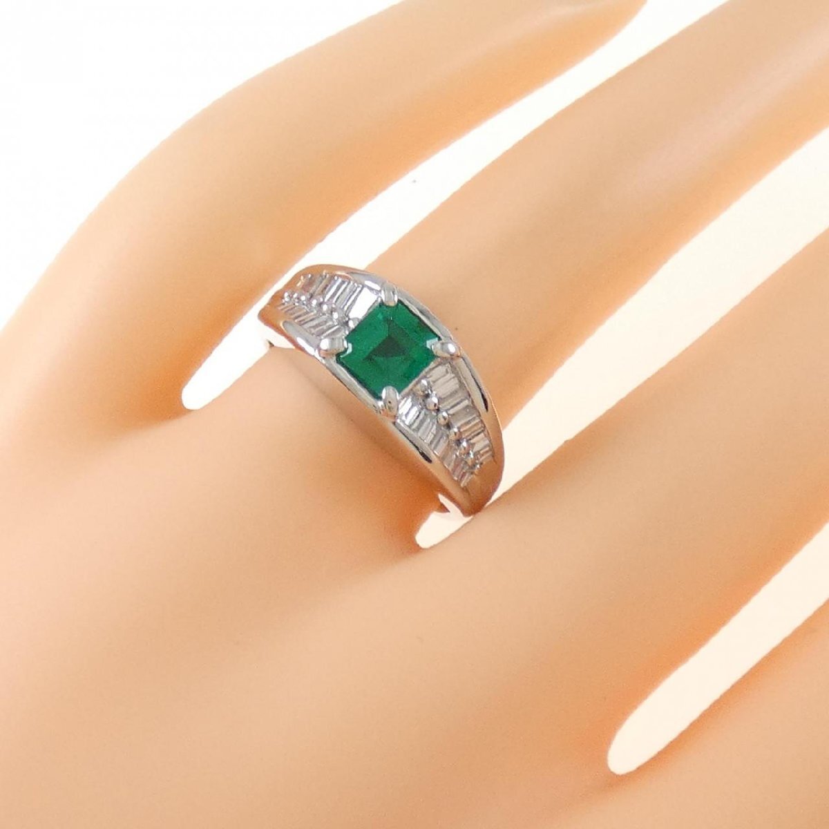 鮮やかなグリーンカラーのエメラルドをセッティング。テーパーカットのダイヤモンドの品の良い煌めきがエレガントなジュエリーです。