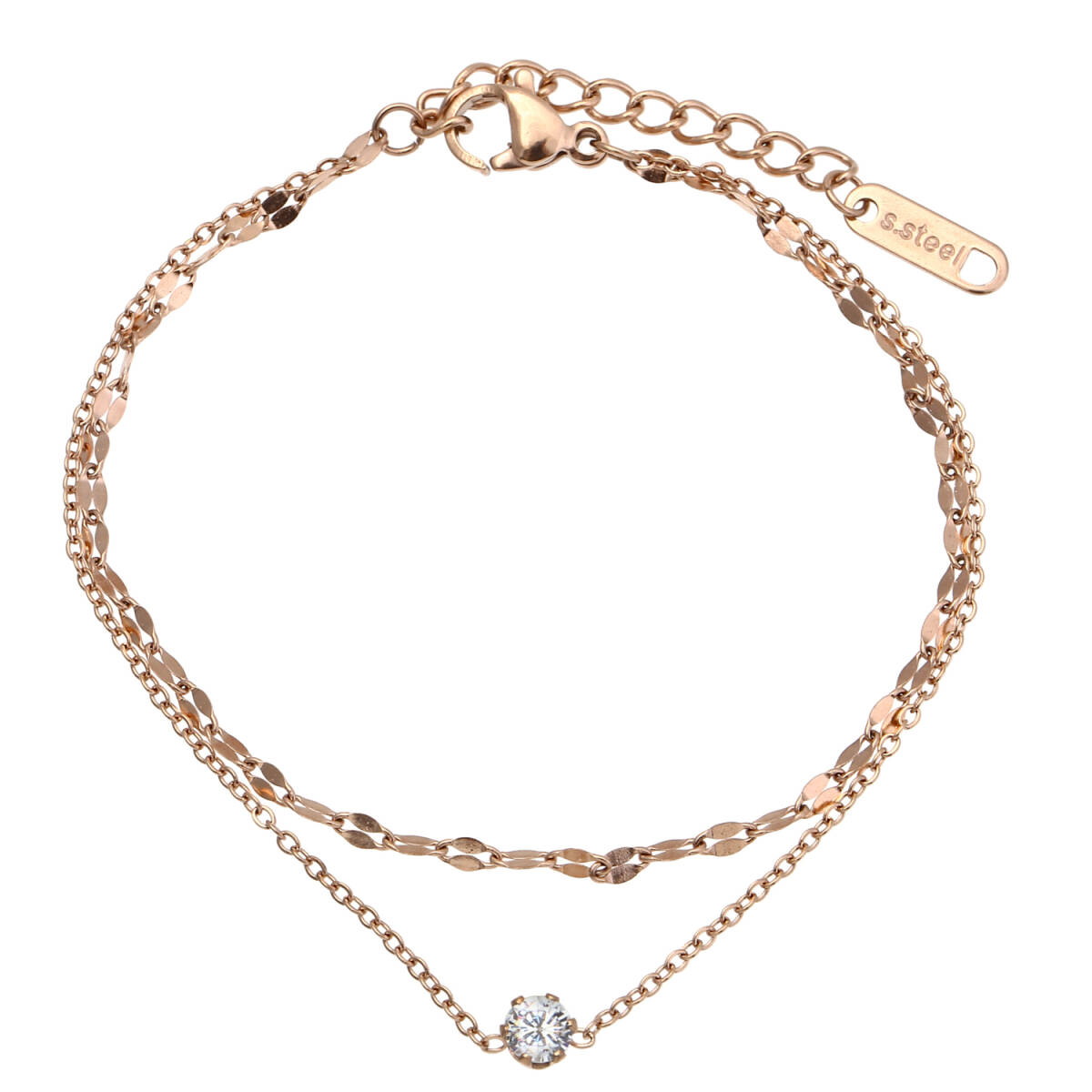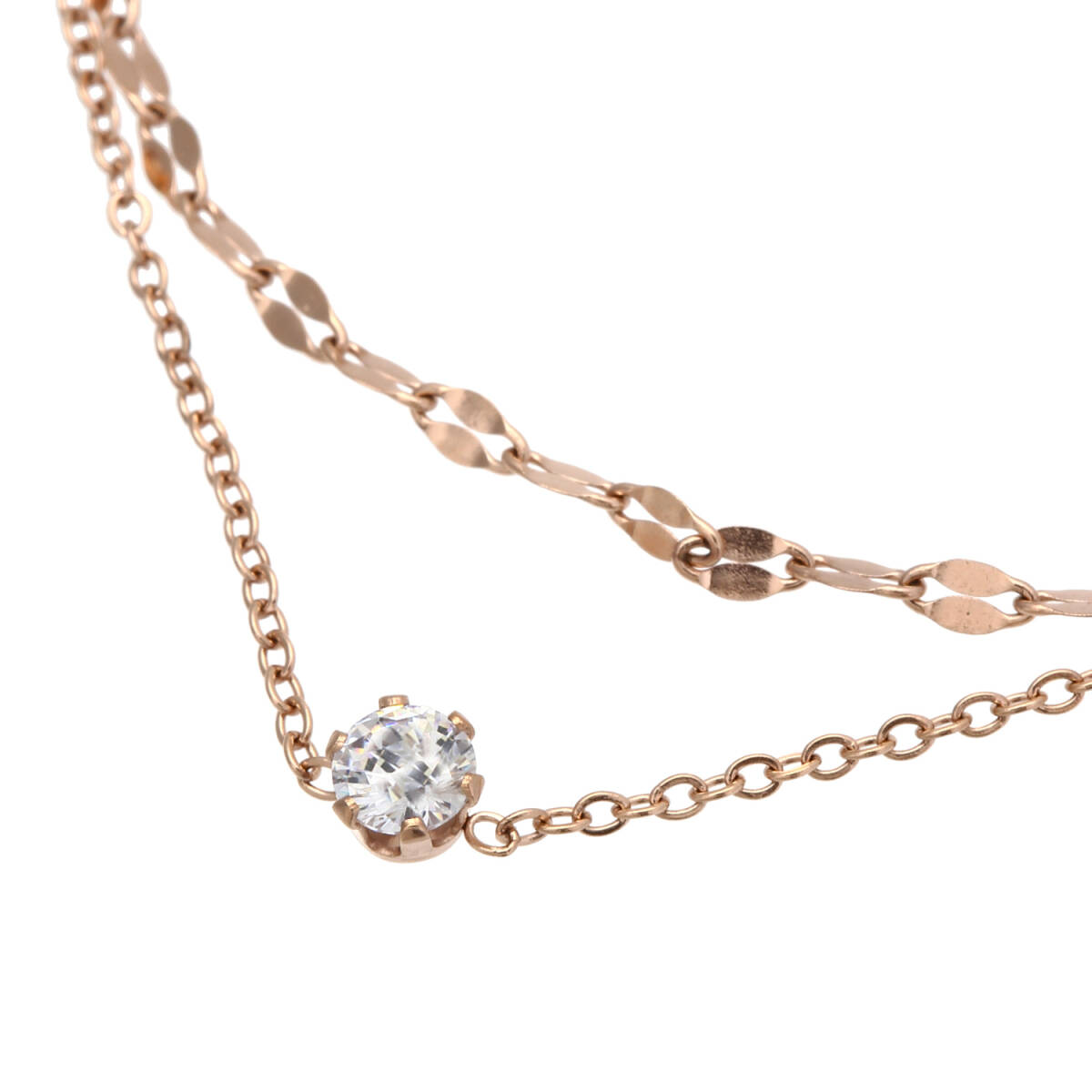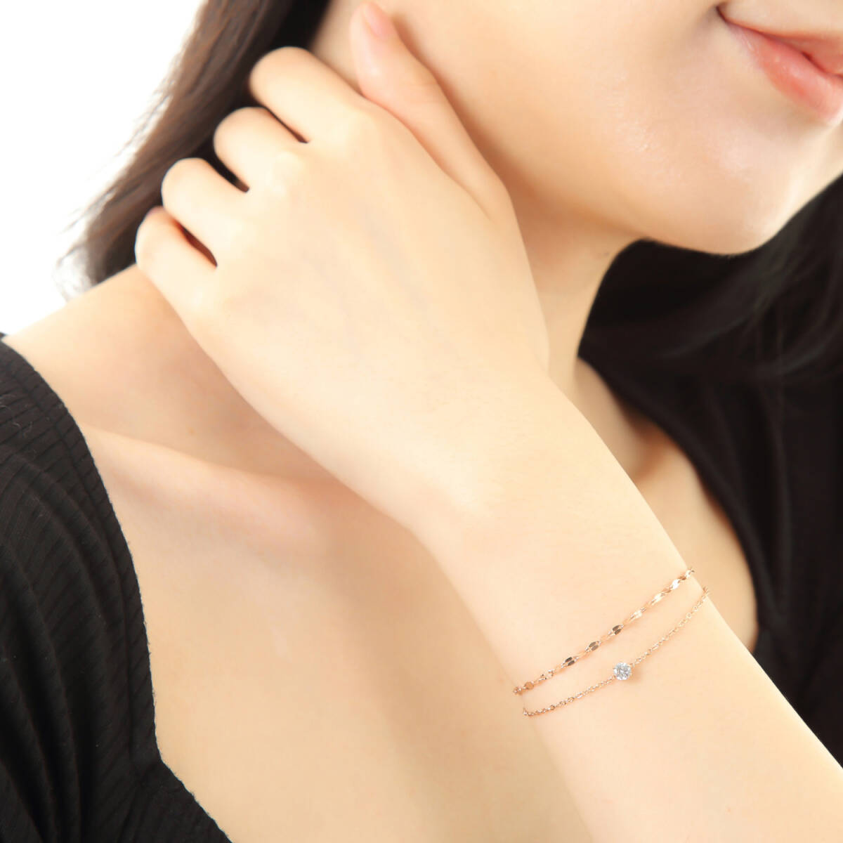 ブレスレット K18 ピンクゴールド 一粒 ダイヤモンド 2連 チェーン ブレスレット 金属アレルギー対応 上品