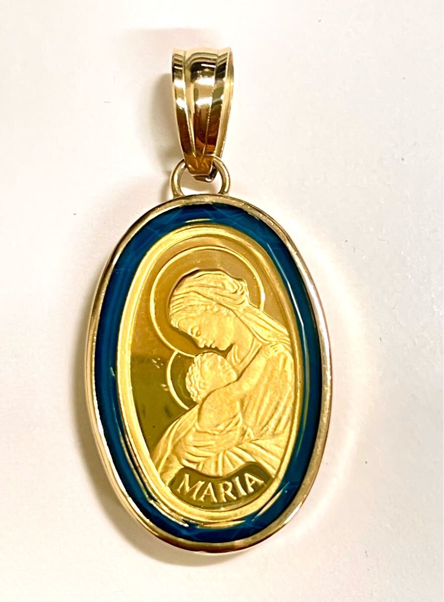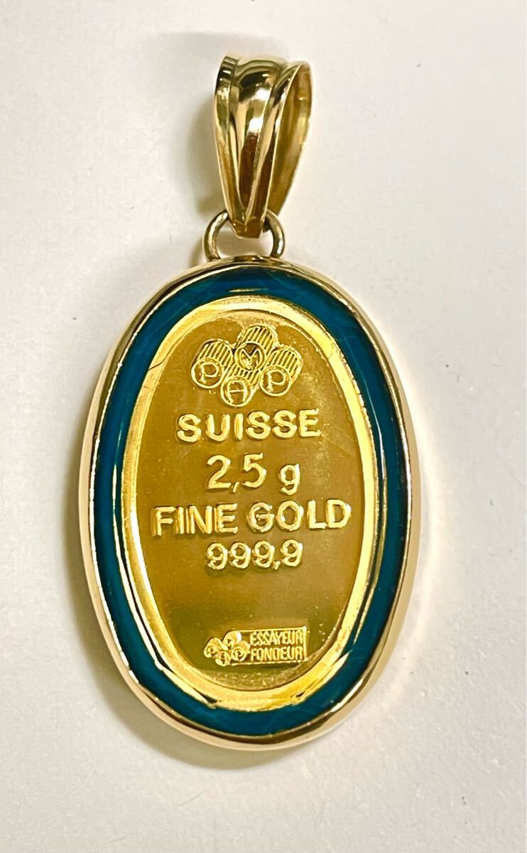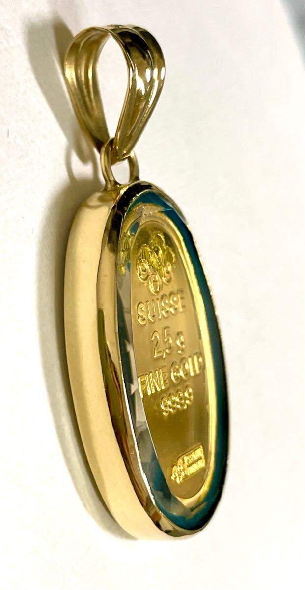 こちらは、K18枠にK24スイスFINEGOLD999.9 2.5g金貨付きペンダントです。