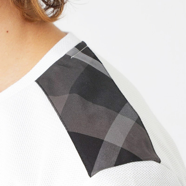 肩部分にアイコニックなクレストブリッジチェックをあしらう事で