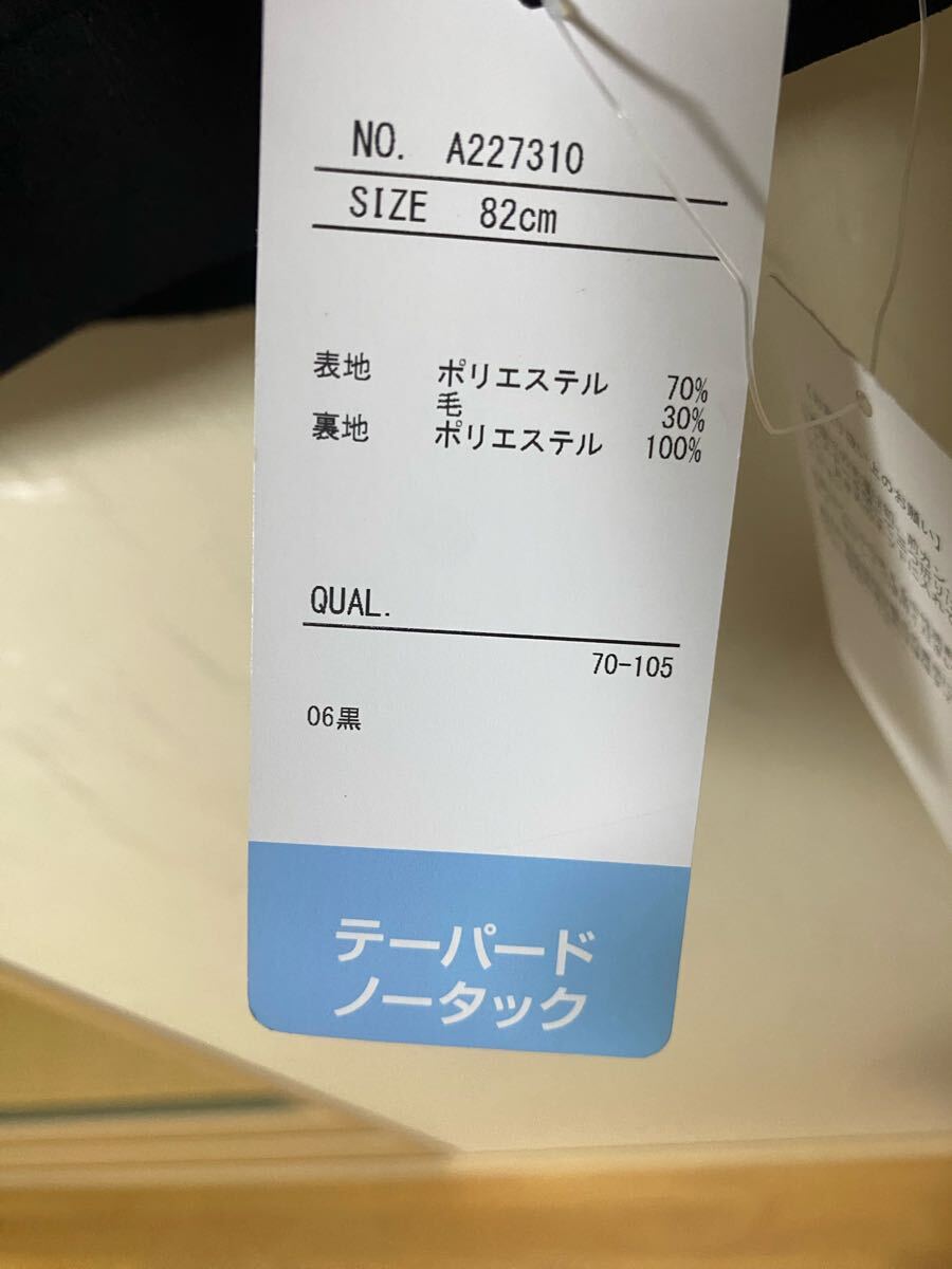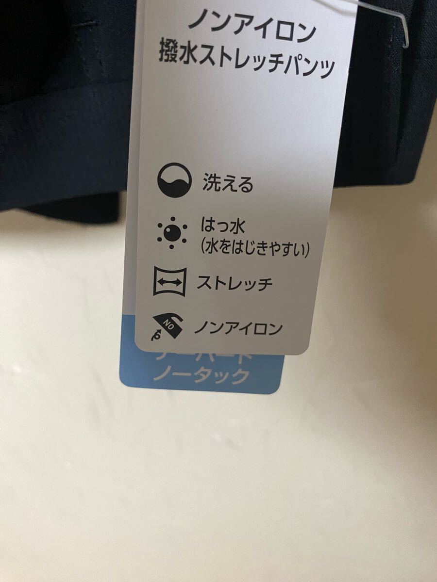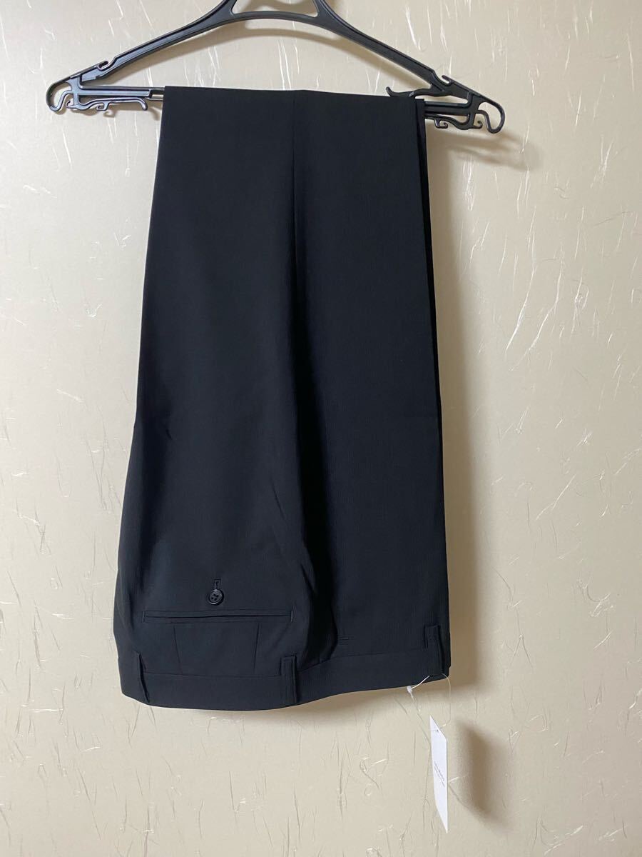 撥水加工とストレッチ機能を備えたノンアイロンのブラックスラックス。