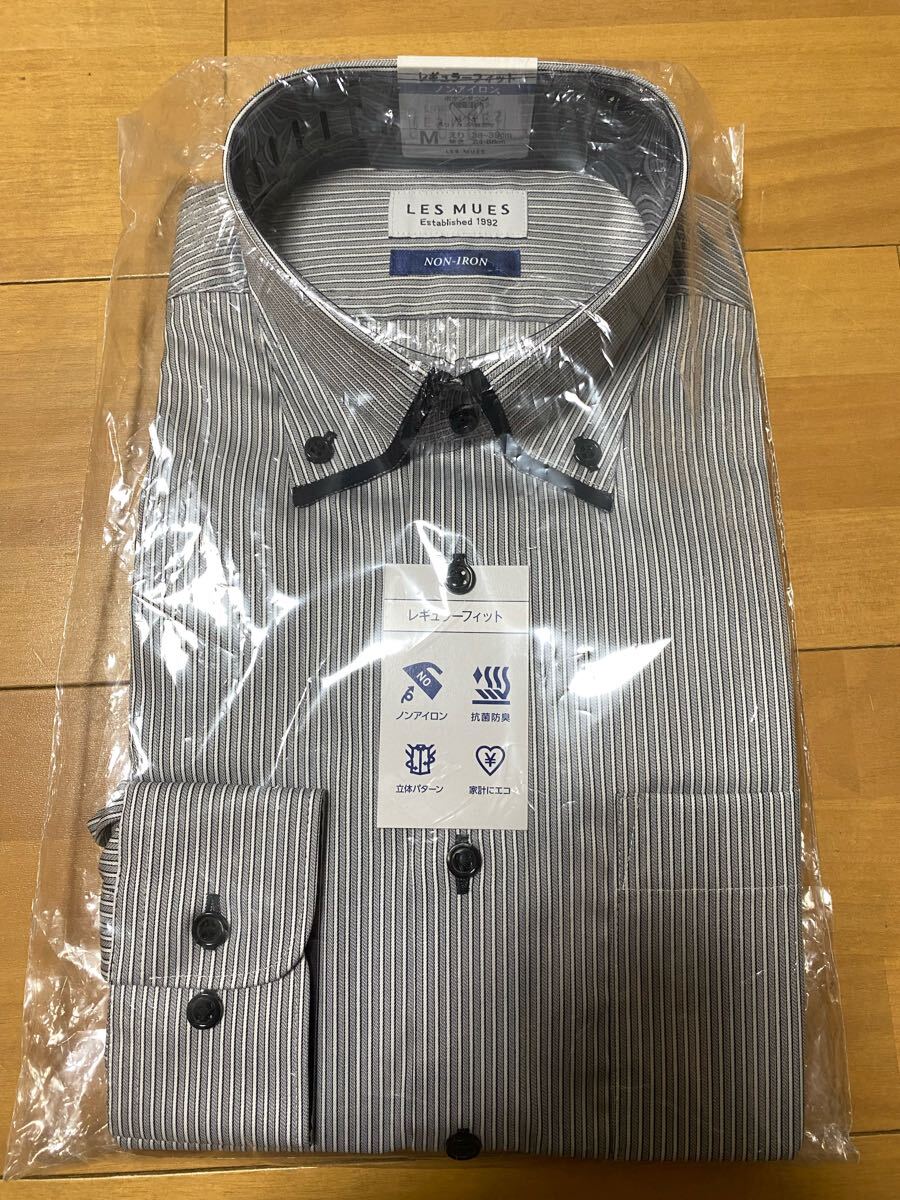 ストライプデザインのMサイズ、ノンアイロンのレギュラーフィットシャツ。