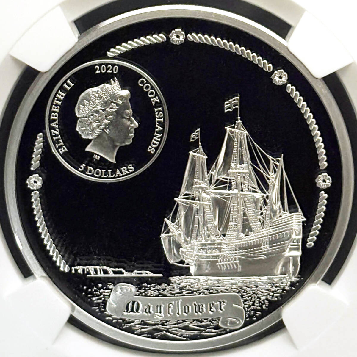 クック諸島 銀貨 2015年 メイフラワー号 400周年記念 5ドル NGC イギリス連邦 ピルグリム・ファーザーズ アメリカ