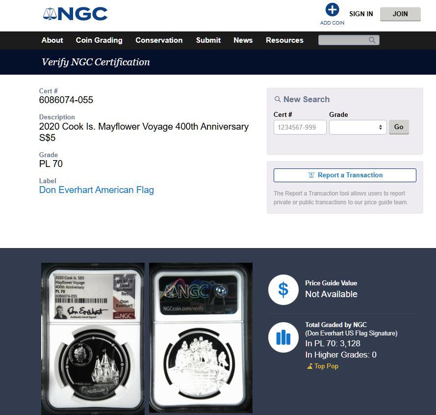 ・鑑定番号:NGC 6086074-055 NGCで確認