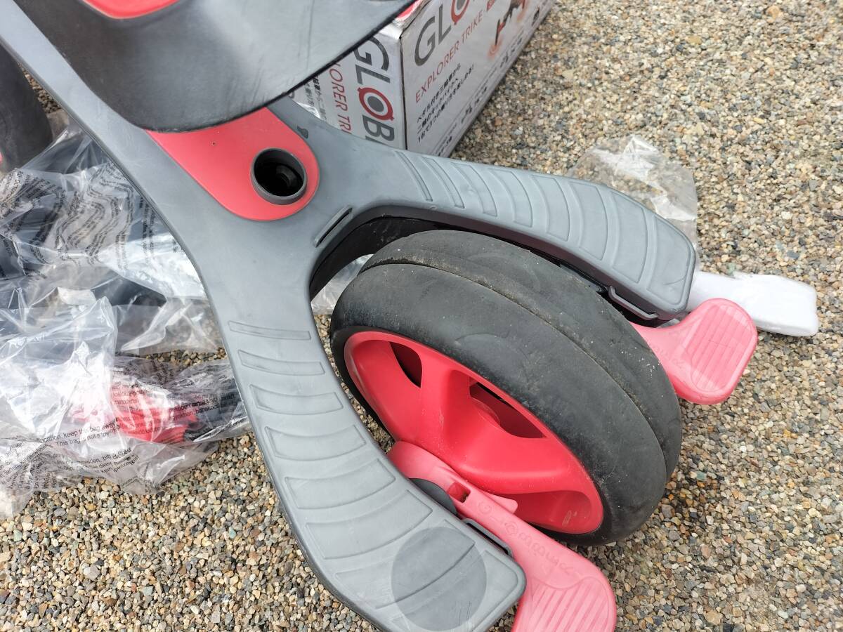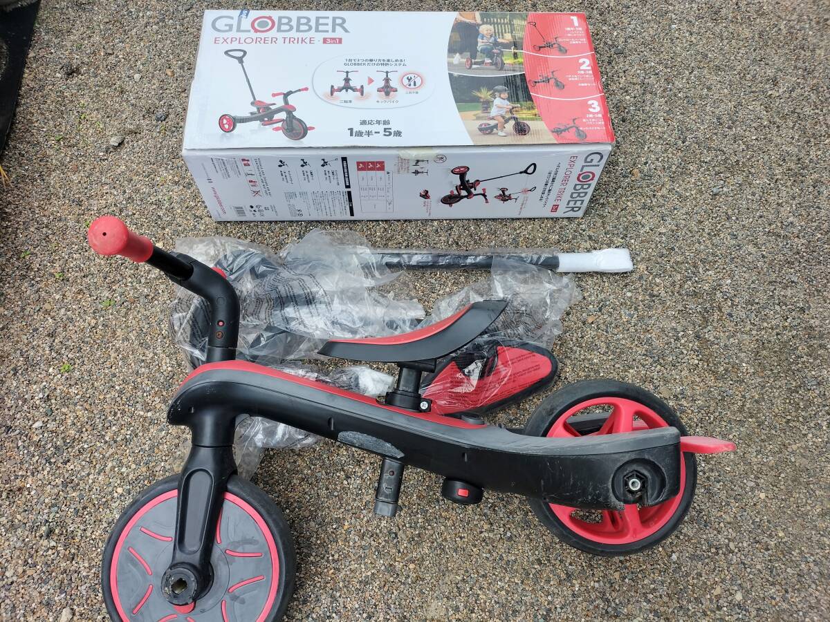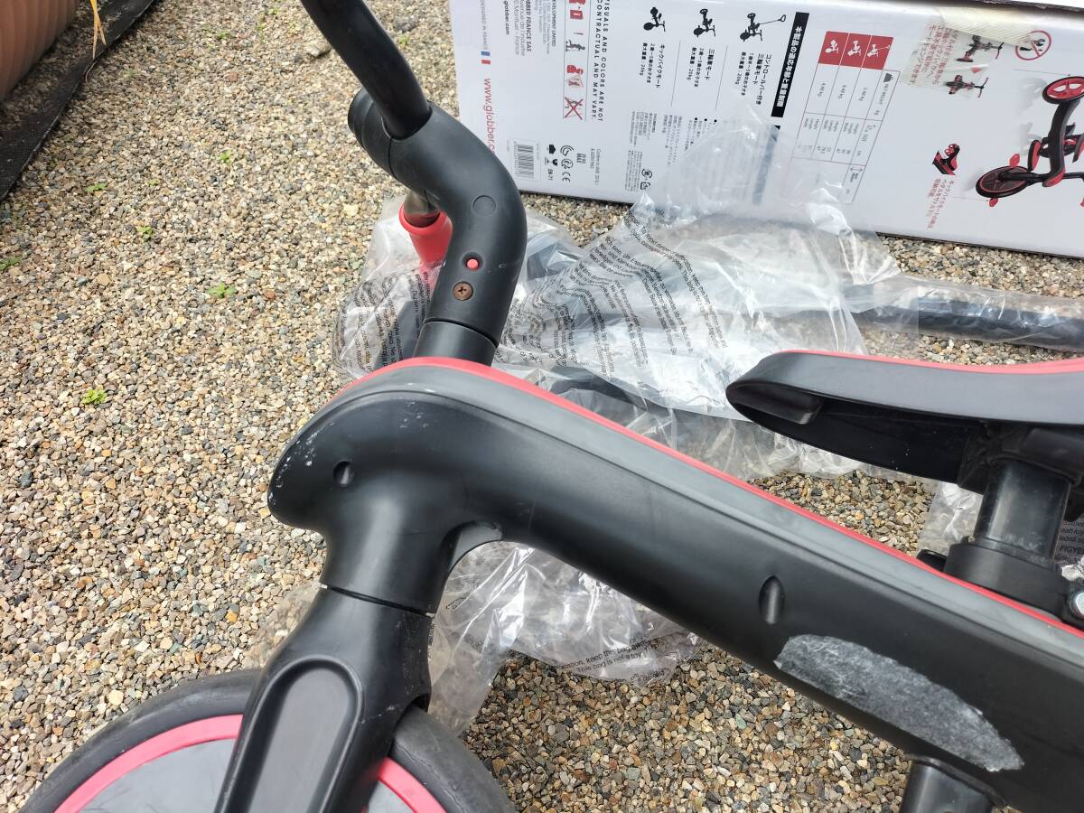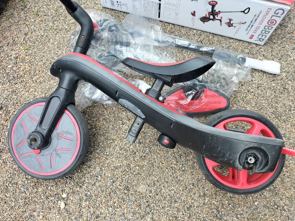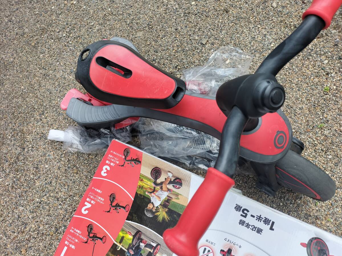 フランス GLOBBER社製の子供用三輪車、バランスバイク、、中古品です。数年前に購入して当方で使用していたものです。新品定価で20000円くらいするものです。こどもの成長、用途に合わせて3形態に変形できる自転車です。ハンドルバー、ペダルなど備品もあります。製品の詳細はメーカーHP、写真の仕様表などでご確認ください。中古品ですので使用痕、傷汚れがそれなりにあります。中古品現状品ですのでノークレームノーリターンでお願いします。