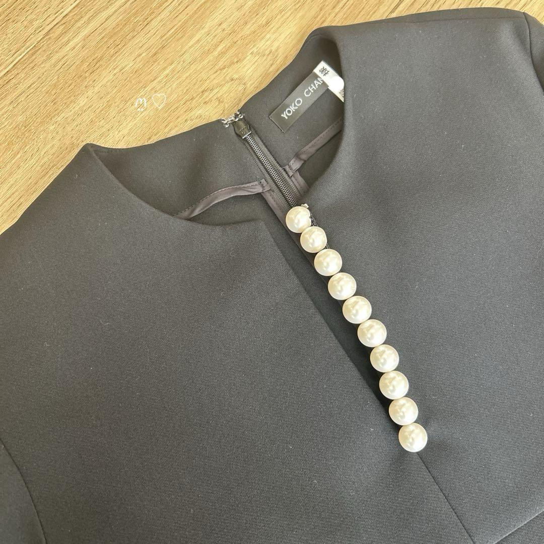 デコルテラインを美しく演出する胸元のスリットラインには、YOKO CHANオリジナルのパールをあしらい華やかに。