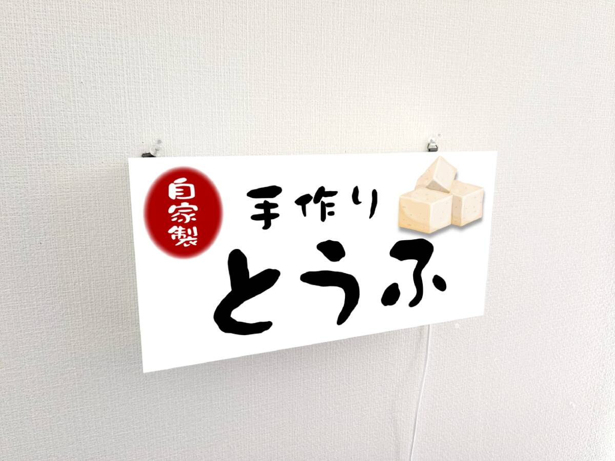 ★画鋲で壁に簡単設置★ 店舗、自宅、ガレージ、オフィスの窓際・カウンター・棚・テーブルやちょっとしたスペース、車内・キッチンカー・屋台・イベント・パーティーなどに 【手作り とうふ】電飾看板Lサイズです★ 勿論、置物としても◎ オーダー無料、プレゼントにも大変好評頂いております★ ◆Lサイズ◆20センチ×40センチ×奥行き7センチ ◆材質◆本体(アクリルプラスチック製)・表示面(IJバックライト発光フィルム貼り) ◆電源◆USB供給電源(家庭用コンセントコネクタ付き) 〇他サイズ〇 ●Mサイズ 150mm×300mm ●LLサイズ 300mm×600mm ●3Lサイズ 400mm×800mm ●4Lサイズ 500mm×1000mm ◆オリジナルデザイン・オーダーも承っておりますので、お気軽にお問い合わせください。 自社製造製品 店舗 自宅 キッチンカー フードトラック 屋台 パーティー イベント サイン ランプ ライト 照明 看板 インテリア雑貨 置物 雑貨 テーブル カウンター 電飾看板 電光看板 光源の種類...LED