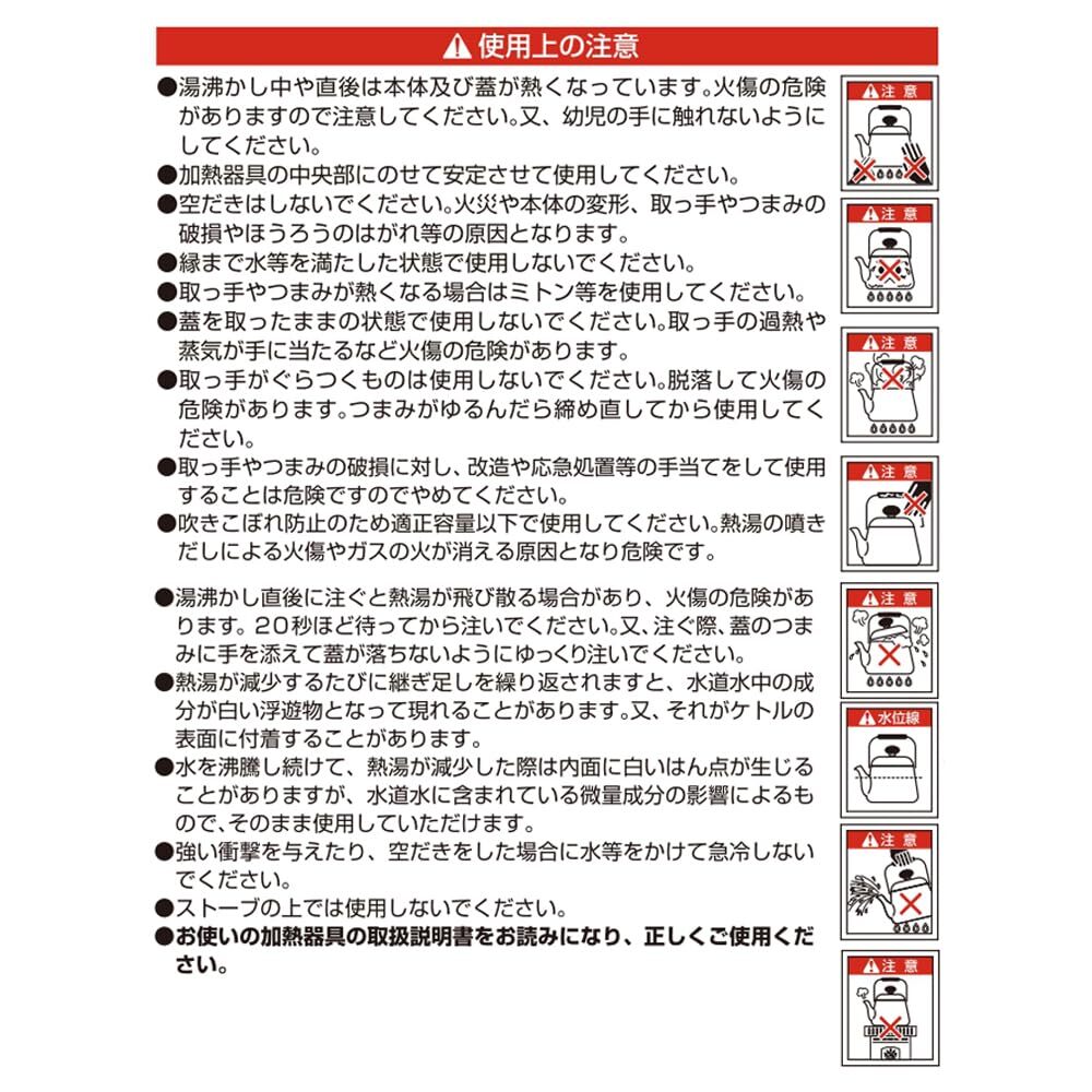 ・素材・材質:本体・ケトルふた/ほうろう用鋼板、表面加工/ほうろう、取っ手・つまみ/天然木、本体縁部/ステンレス鋼、金属部/ステンレス鋼