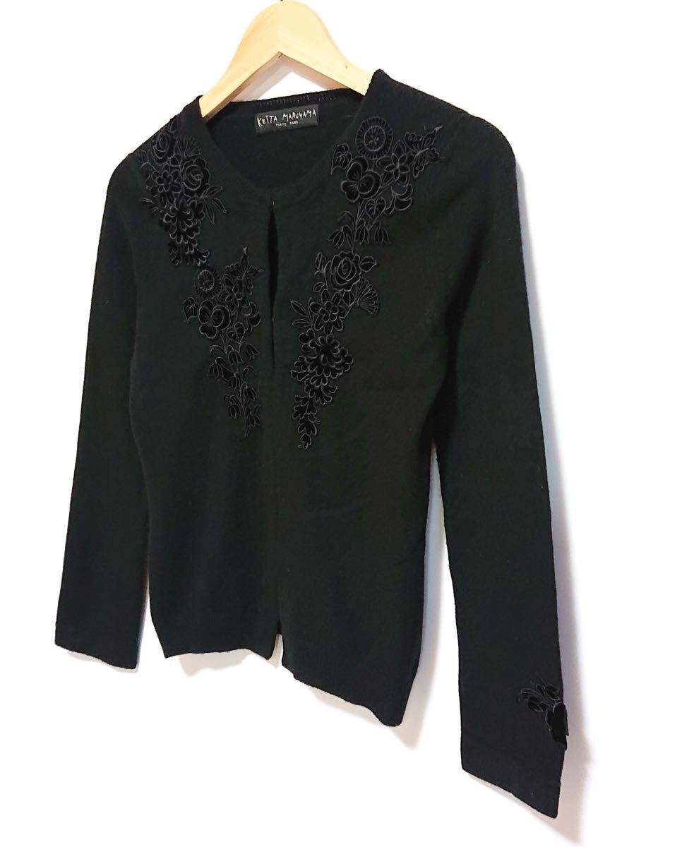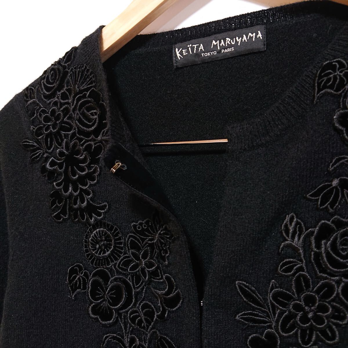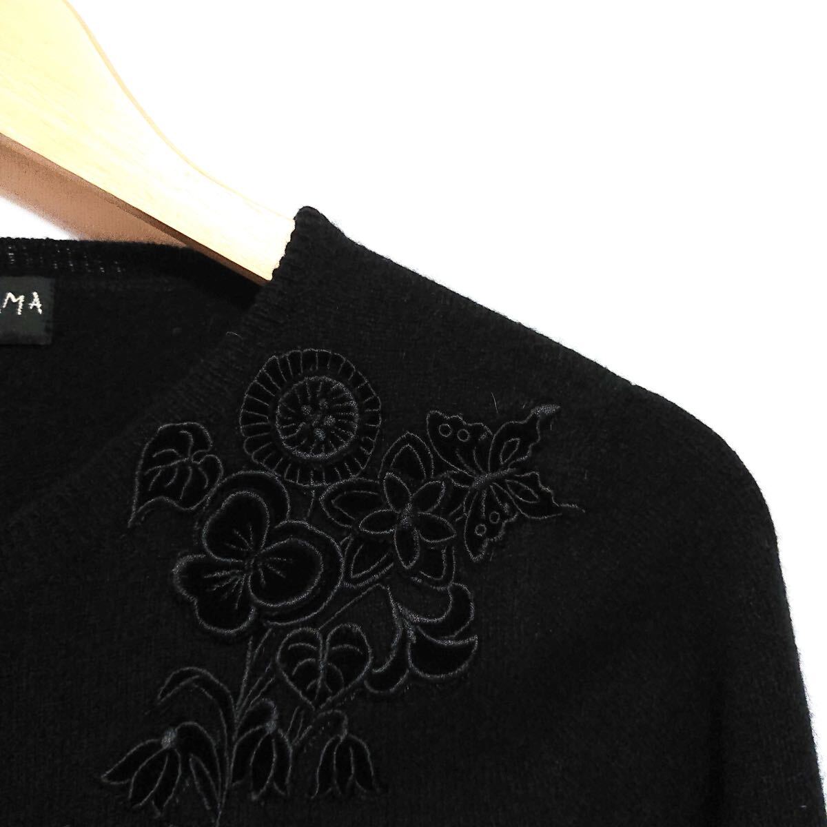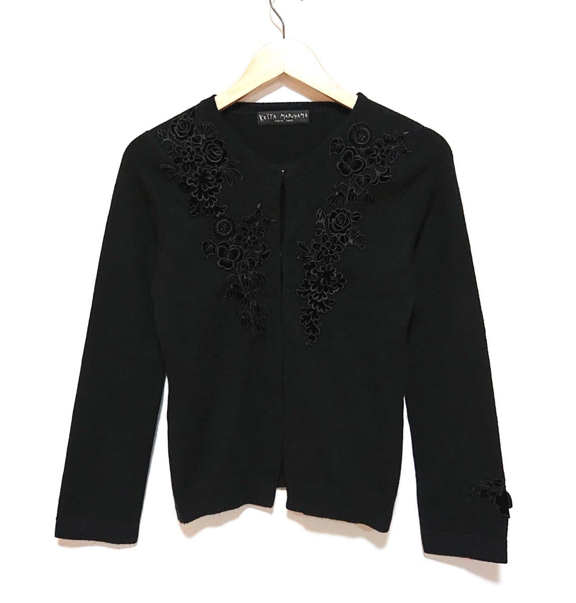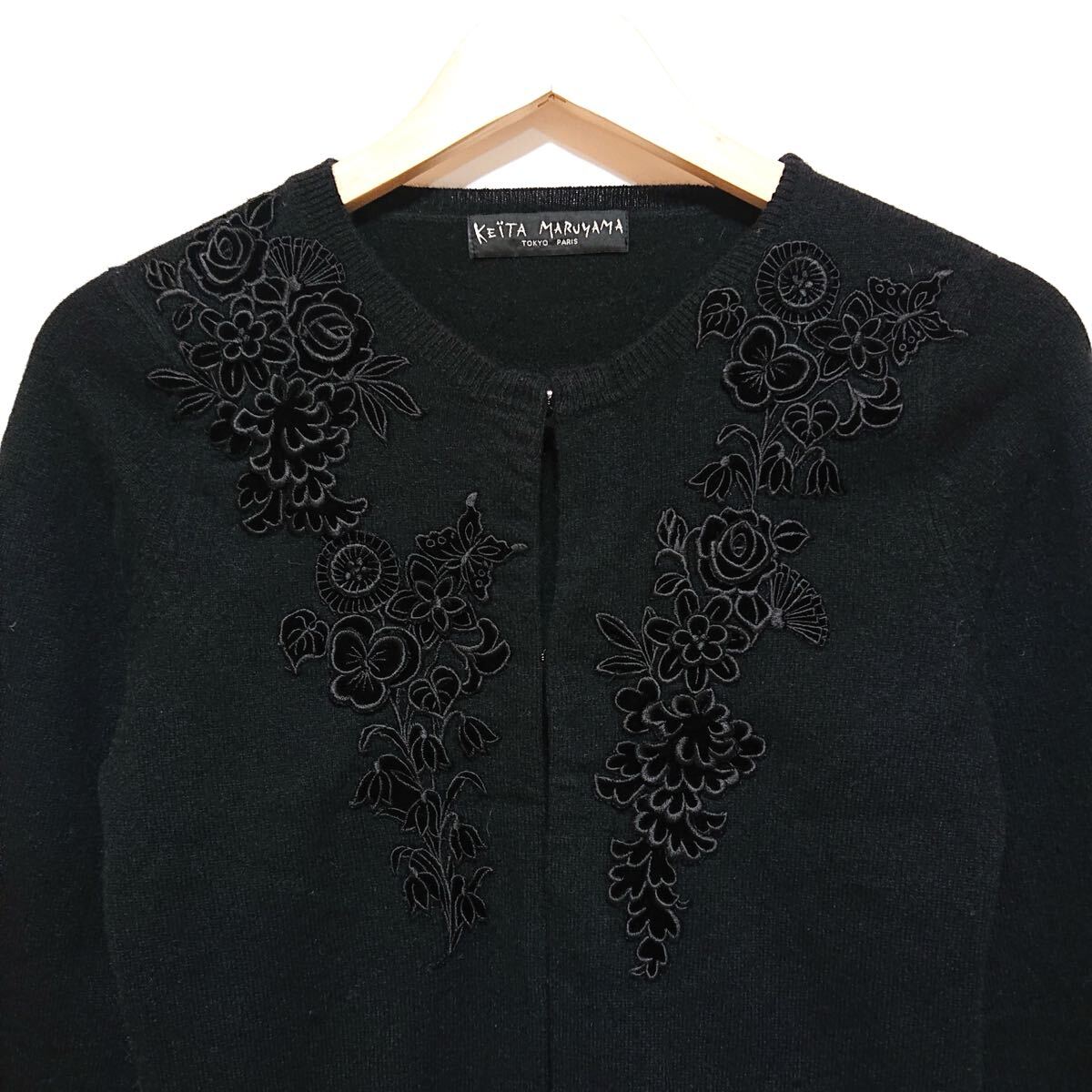 h3713gg KEITA MARUYAMA/ケイタマルヤマ サイズ1(S位) ニットカーディガン ブラック 黒 レディース カシミヤ100% お花刺繍 上品 シンプル