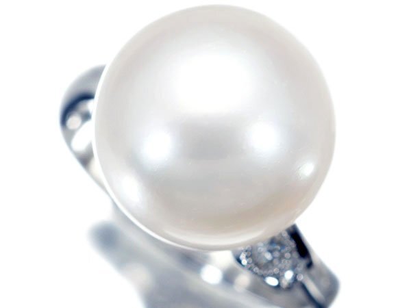 優しい彩り放つ南洋白蝶真珠12.6mm珠&天然ダイヤモンド総計0.10ctを素敵に宝飾した、高級Pt900リングを超激安価格で特別大放出致します!