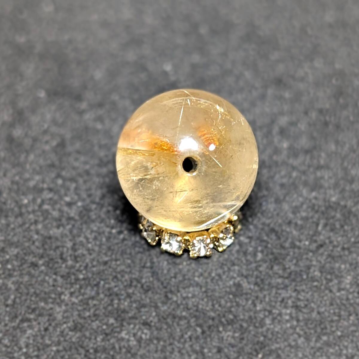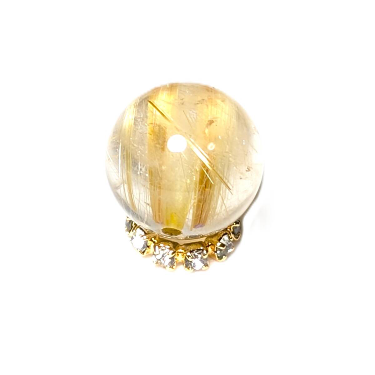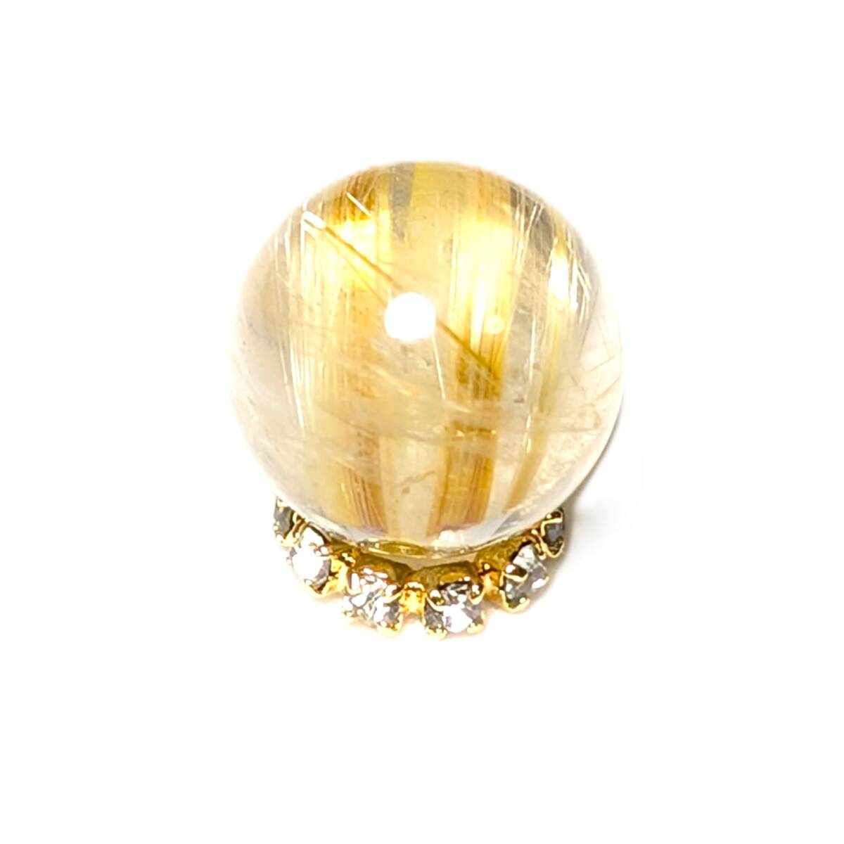 最強極太金針入り水晶 ゴールド タイチンルチル 10ミリ 1粒売り 貫通穴あり パワーストーン お守り効果 天然石 ハンドメイド 贈り物 ギフト