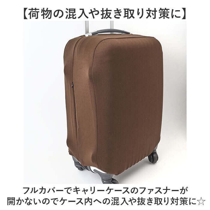 商品説明 | ・・【スーツケースを守るカバー】 ・傷や汚れから大切なキャリーケースを守る◎キャリーケースカバーが新登場! ・【シンプルな見た目】 ・ベーシックカラーの無地仕様で、シーン問わず使えるシンプルな見た目◎ ・【クッション性で傷から守る】 ・カバーはクッション性のある生地を使用し、キャリーケースを傷から守る ・【汚れからもカバー】 ・前後左右しっかり覆うので汚れがキャリーケースにつかないのも嬉しいポイント。 ・【荷物の混入や抜き取り対策に】 ・フルカバーでキャリーケースのファスナーが開かないのでケース内への混入や抜き取り対策に☆ ・【被せるだけの簡単装着】 ・グーンと伸びるので、上から被せてファスナーとベルトをカチッと留めるだけ!ズレにくい! ・【サイズに合わせて選べる】 ・・3サイズ展開でお手持ちのキャリーケースに合ったサイズから選べる♪ |