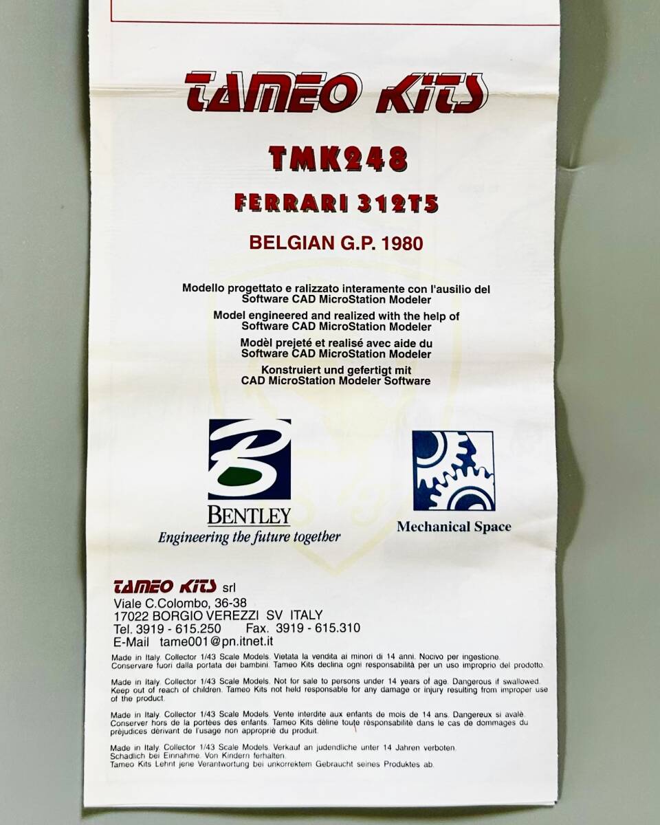 TAMEO(タメオ)1/43 Scale「FERRAARI 312T5 BELGIAN G.P. 1980(フェラーリ312T5 ベルギーG.P. 1980)TMK 248」となります。
