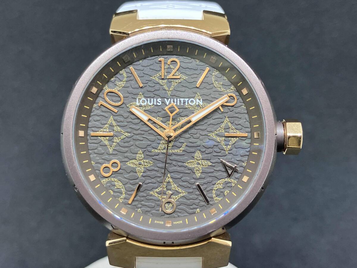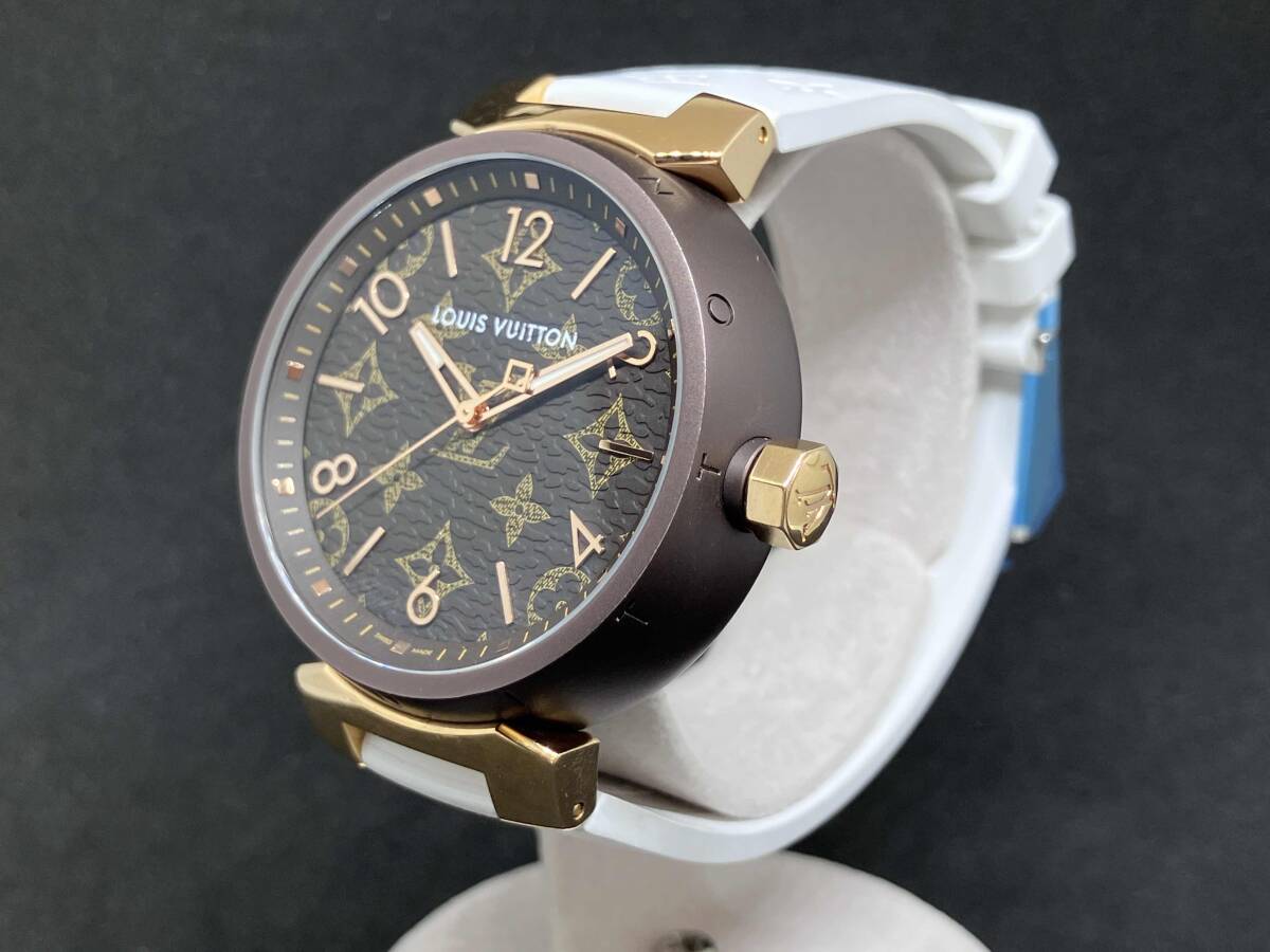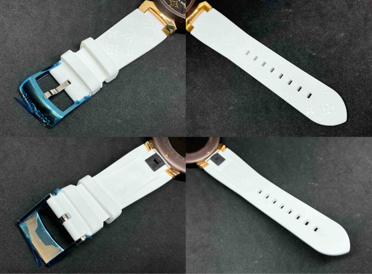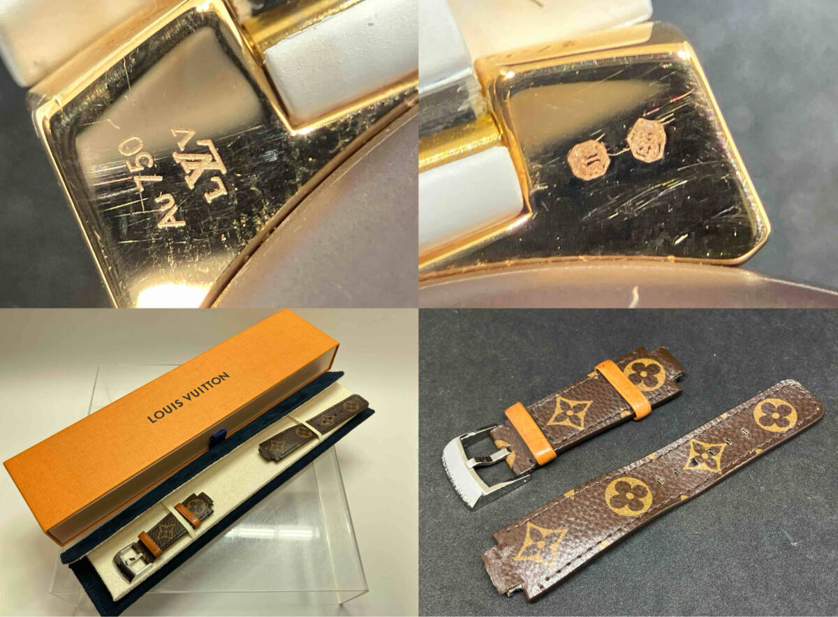 ケース小傷 ホワイトベルト(純正)未使用に近い状態 オリジナルモノグラムレザーベルトの留め具付近上下とも一部剥がれ 2024年10月電池交換済み | ||||||