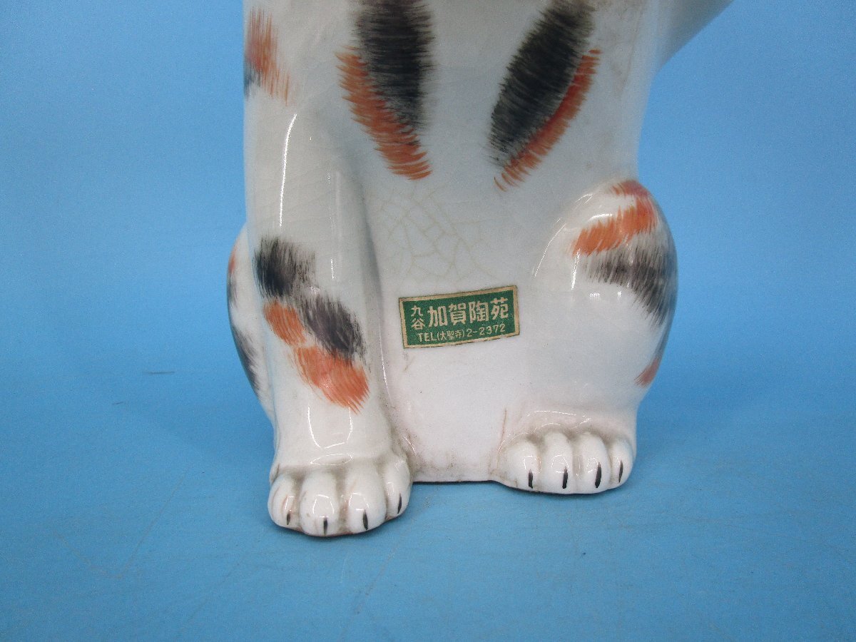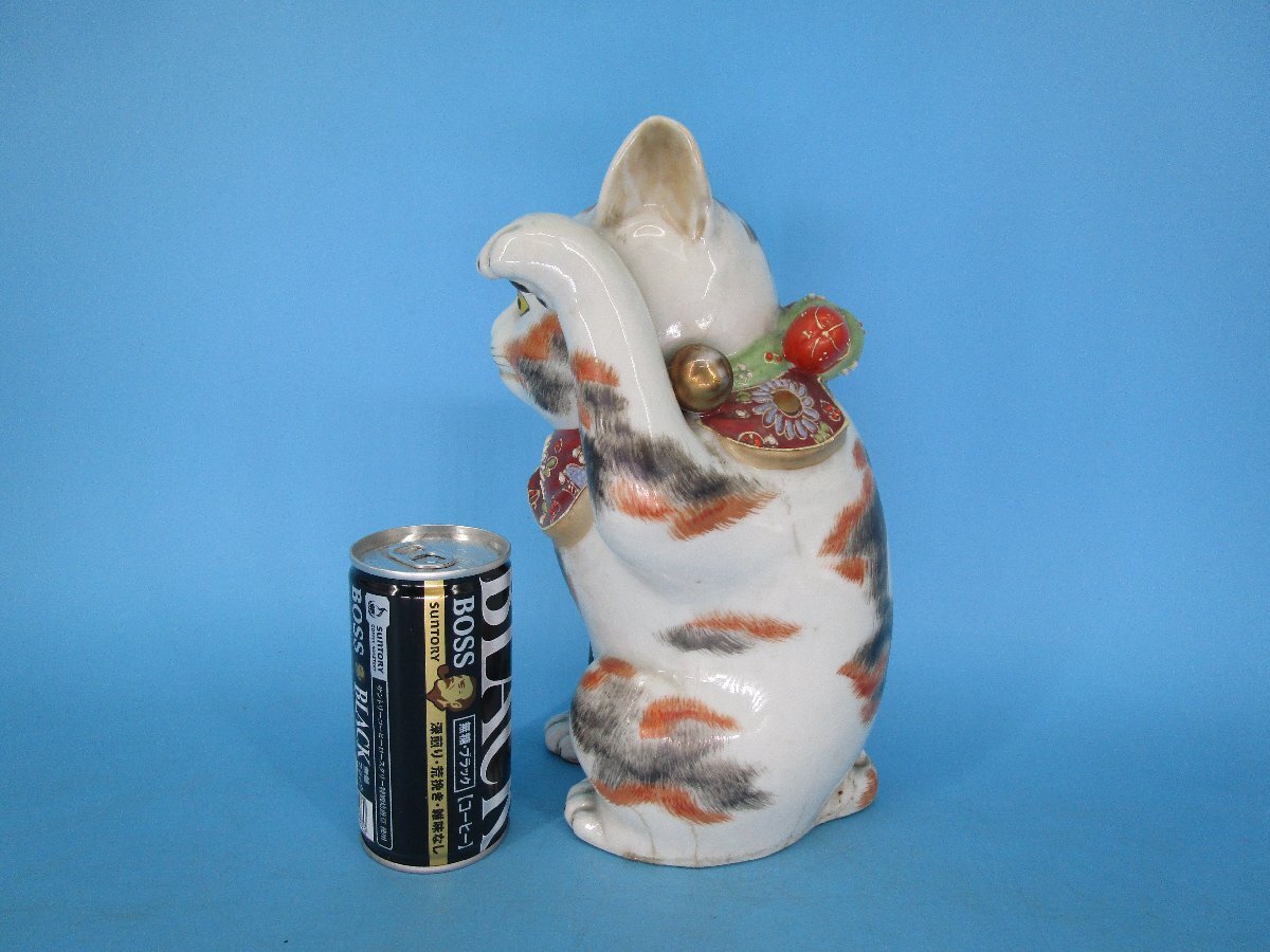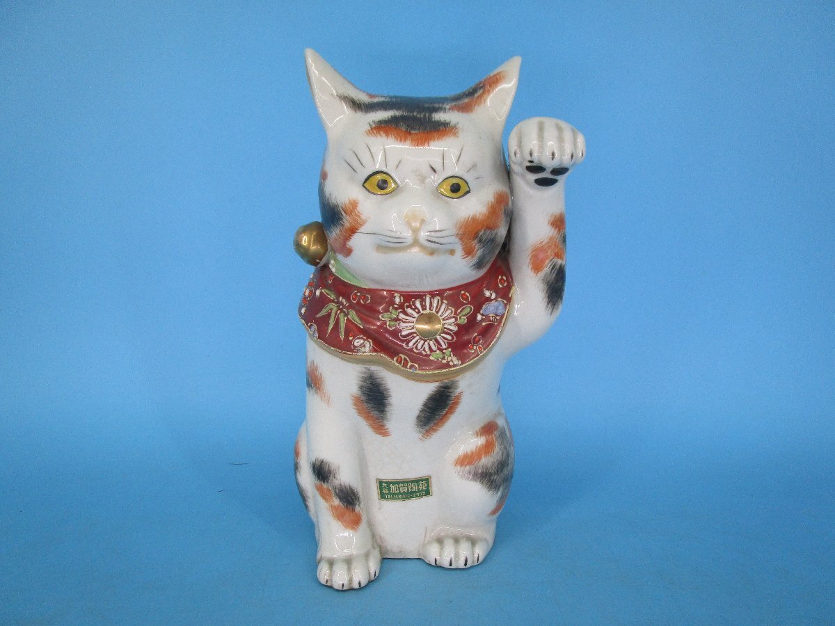 九谷焼 加賀陶苑 招き猫 置物 色絵 金彩 H24cm  縁起物 現状品(DE978P