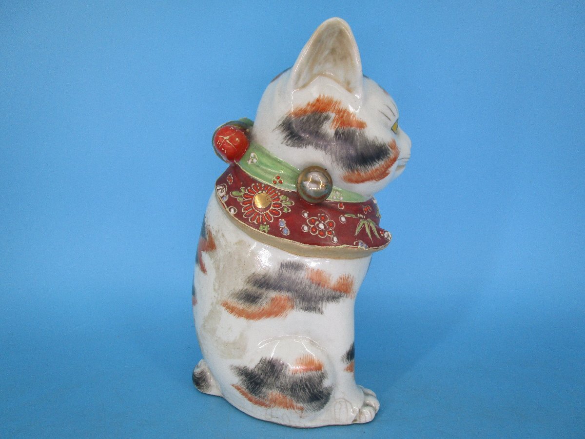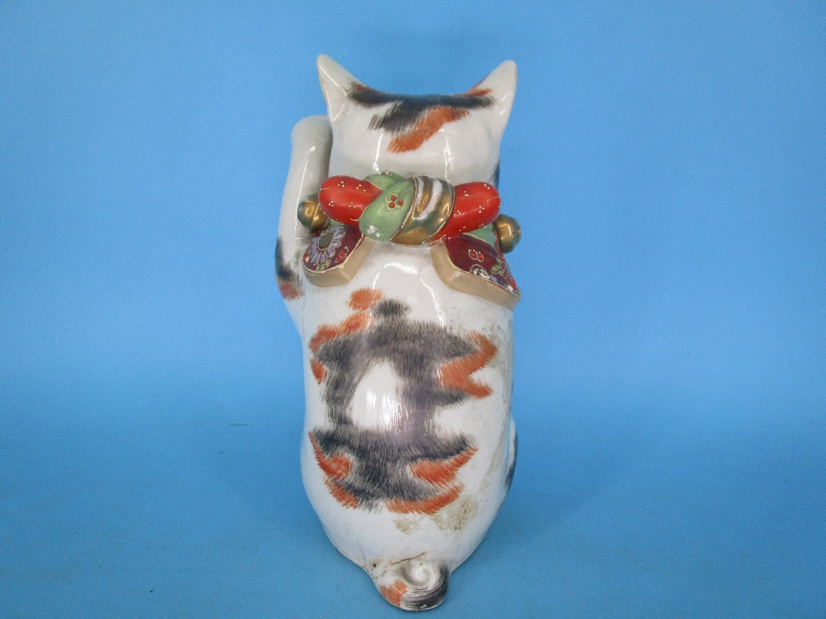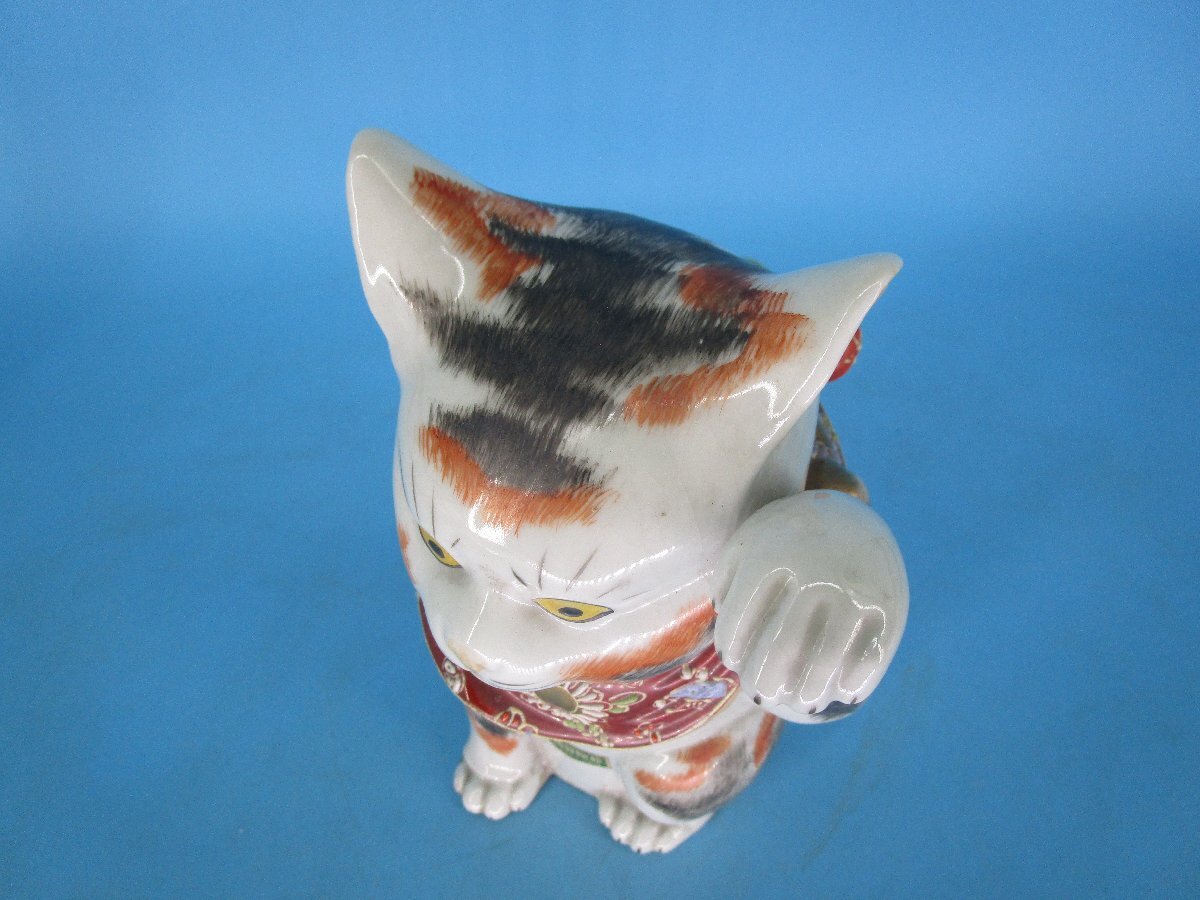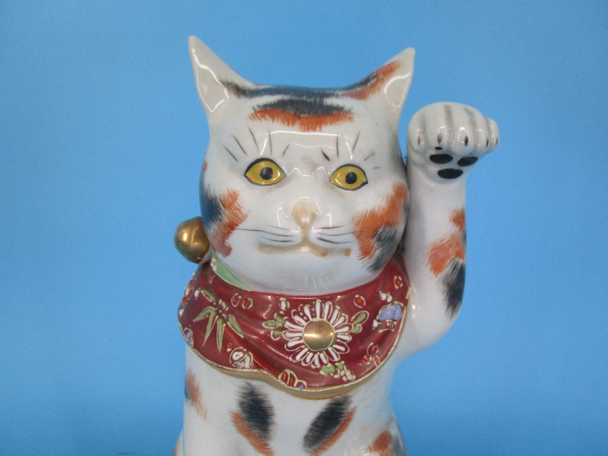 九谷焼 加賀陶苑 招き猫 置物 色絵 金彩 H24cm  縁起物 現状品(DE978P