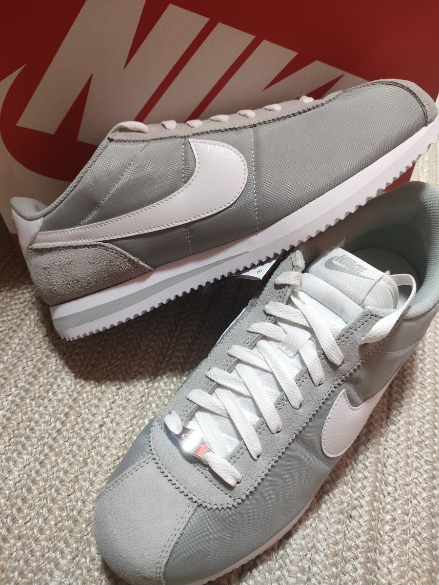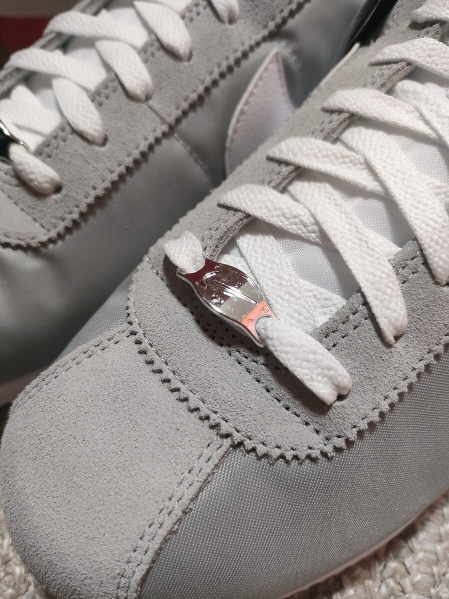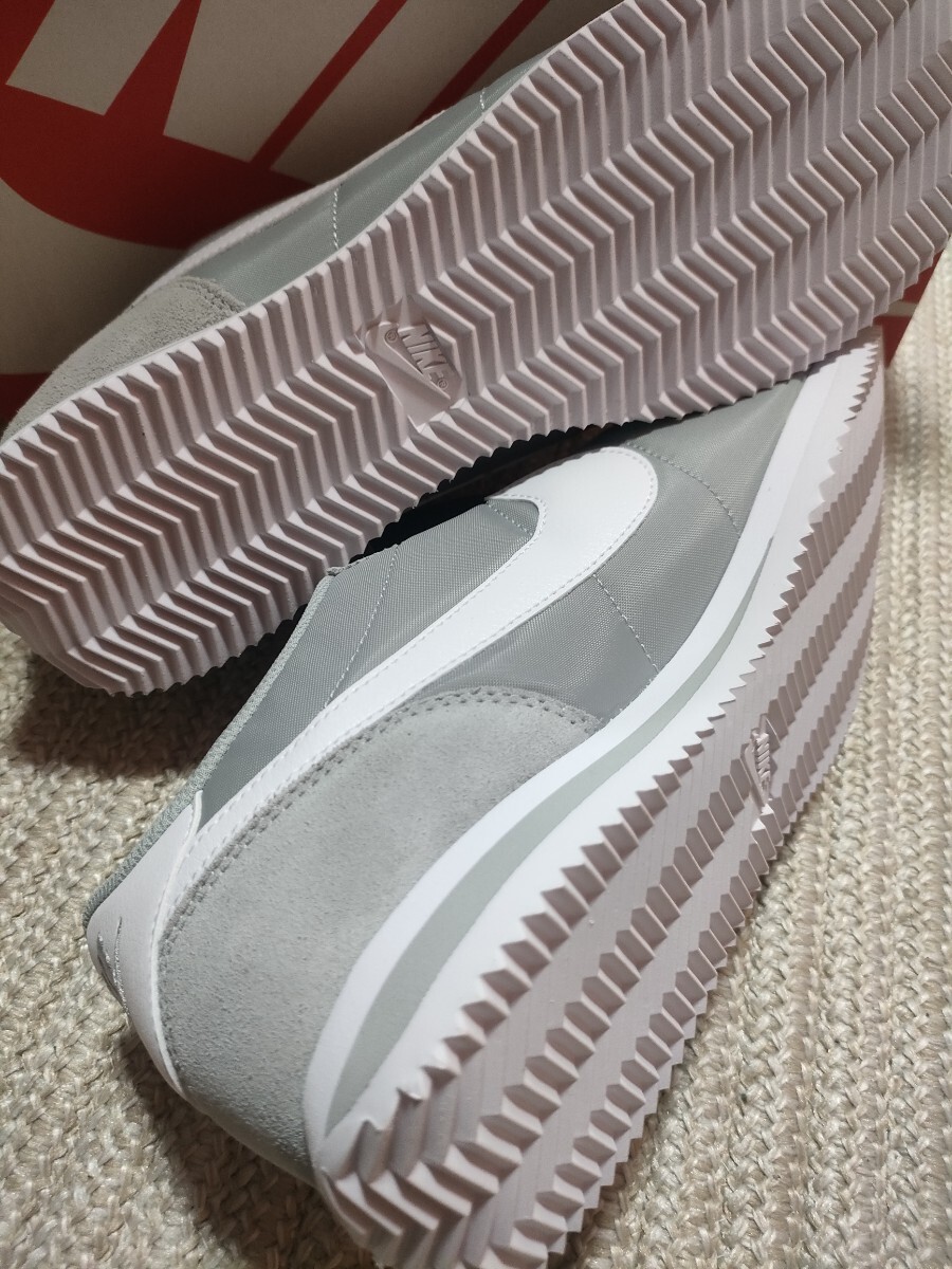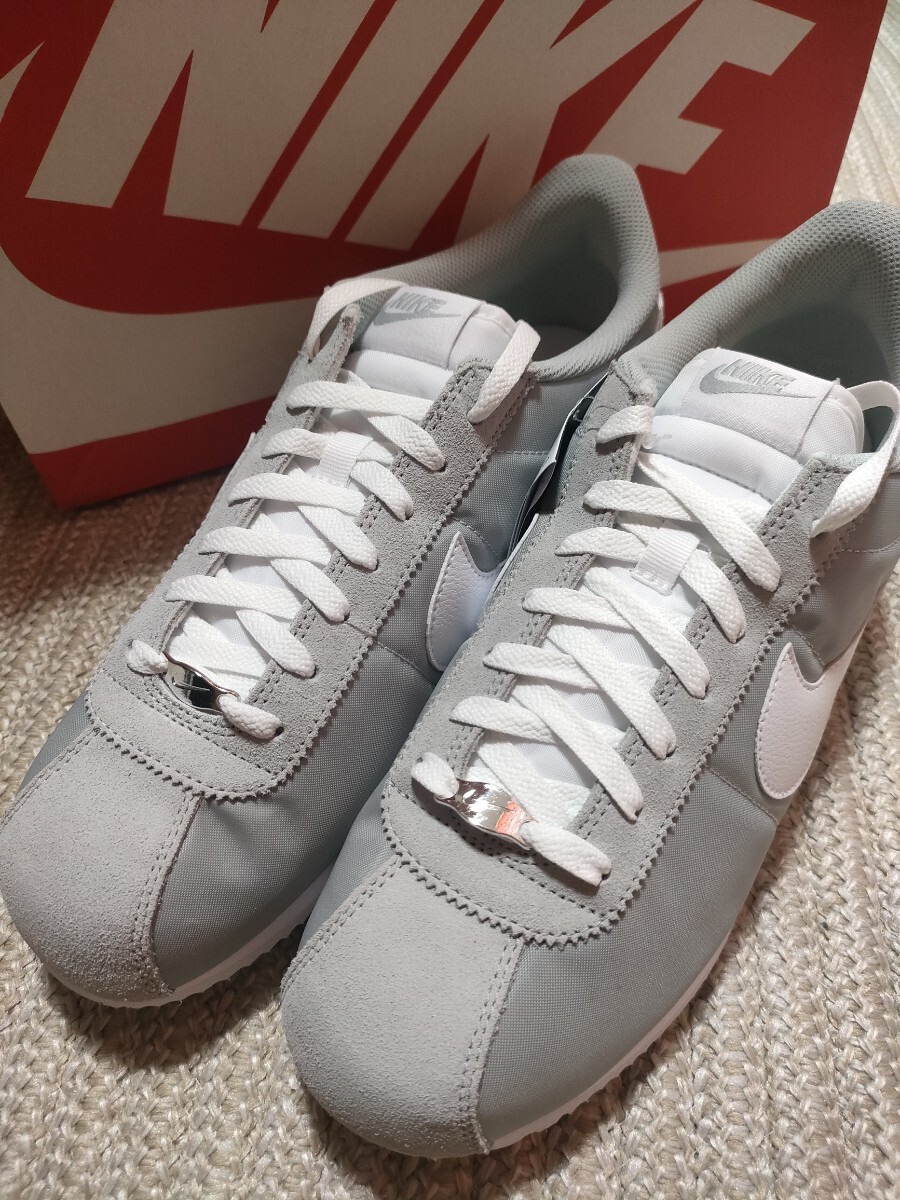 シンプルなグレー×ホワイトのカラーで何にでも合わせやすい一足です。