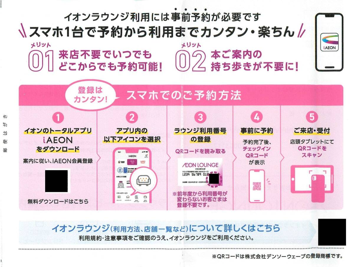 詳細は記載の注意事項(写真)ならびにホームページもご確認ください。→https://www.aeon.com/aeonapp/service/lounge/