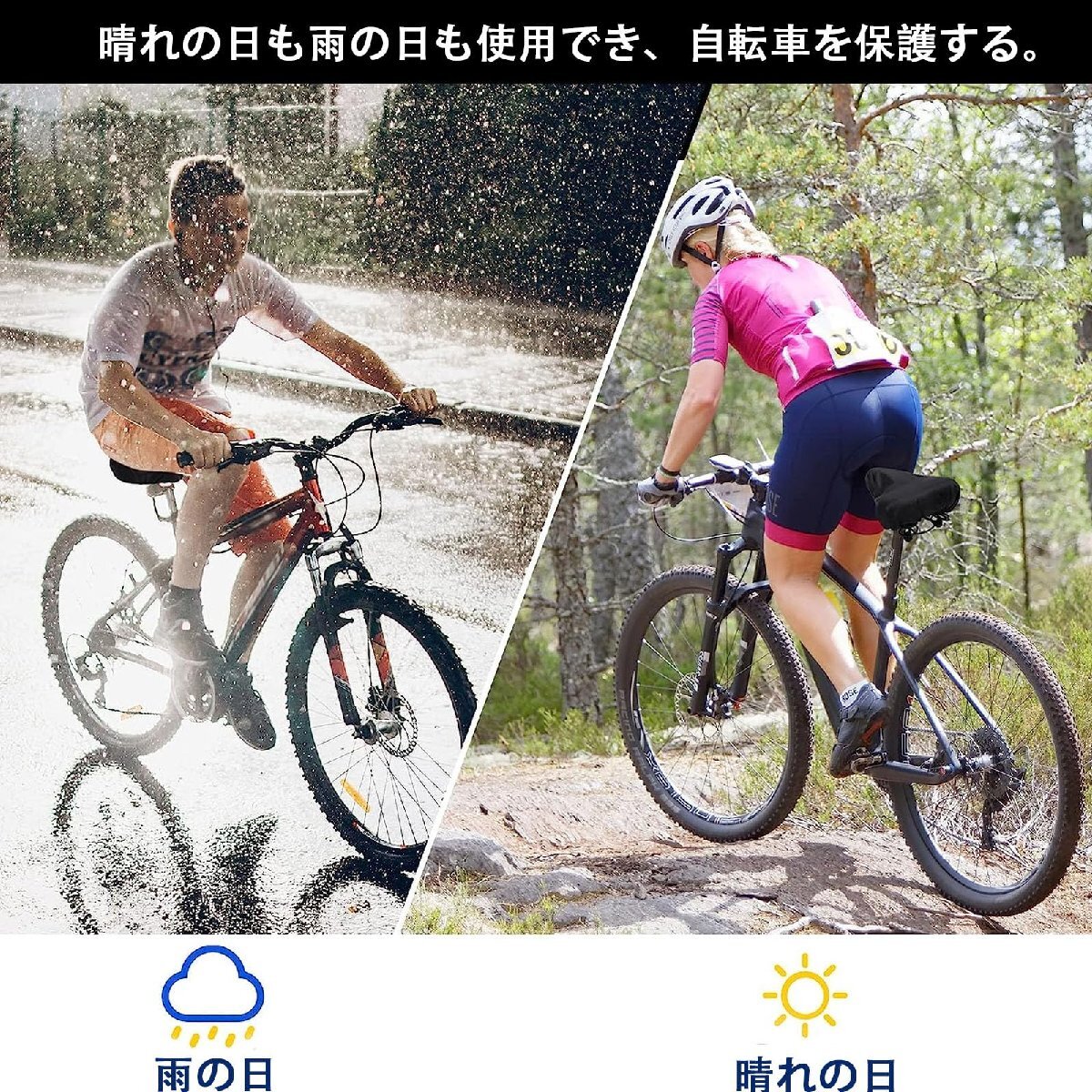 ほとんどのバイクシートにフィット:このバイクシートダストカバーは、あなたのバイクシートに最適なカバーです。巾着のデザインは、特にワイドゲル自転車シート、普通の自転車やマウンテンバイクなど、ほとんどの自転車シートのモデルに柔軟に適応させることができます。