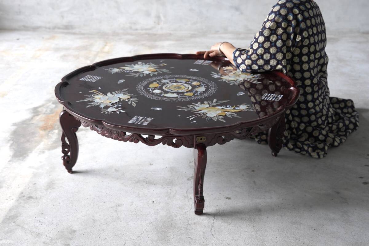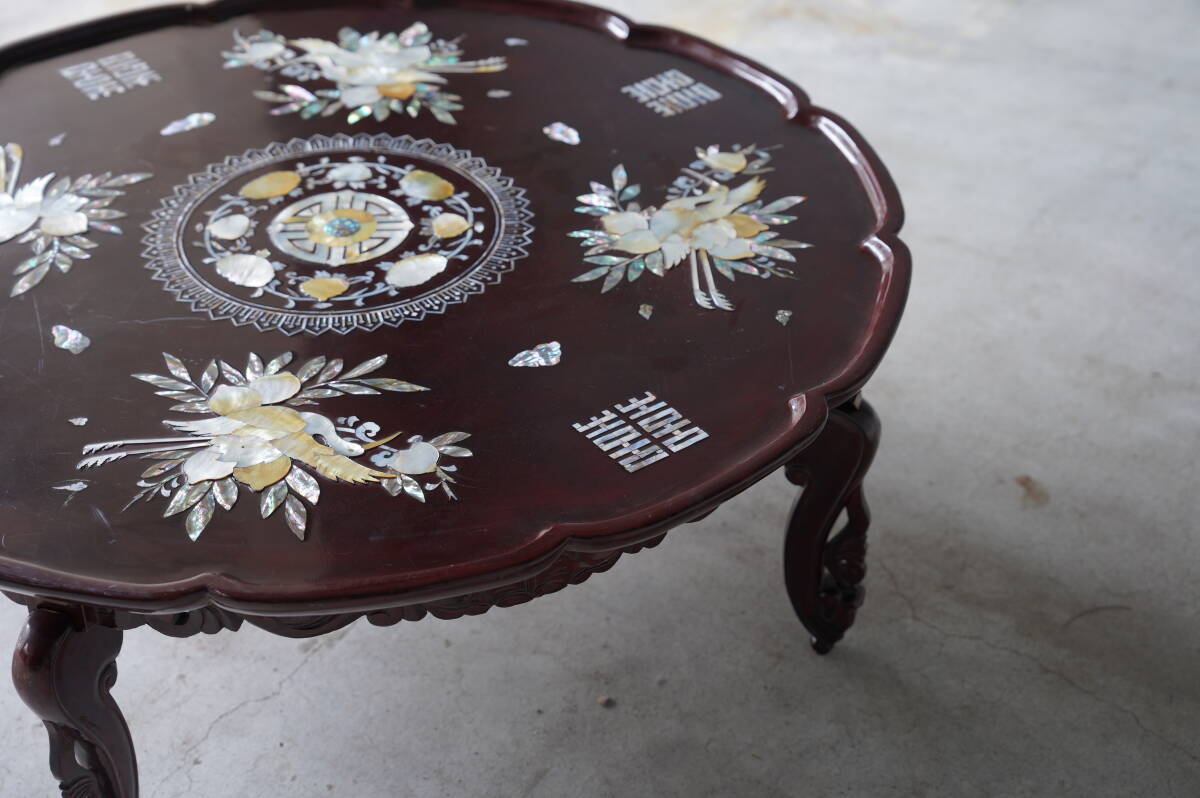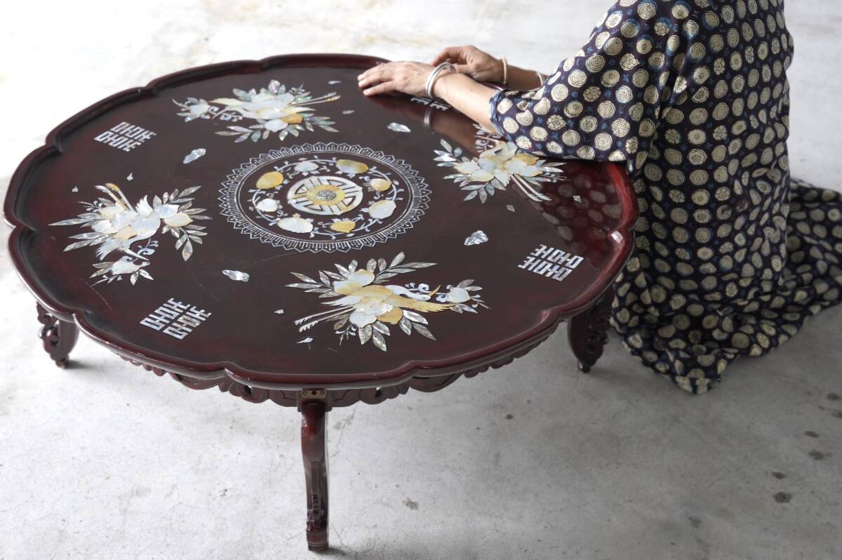 こちらは、古い中国の螺鈿細工のテーブルです。