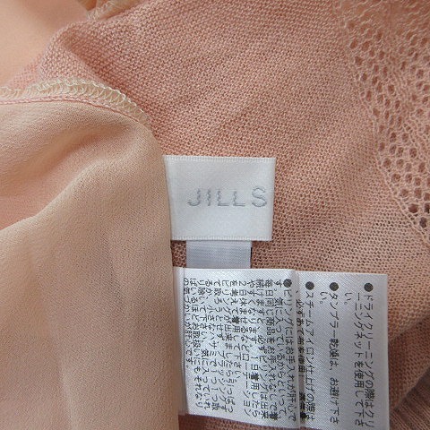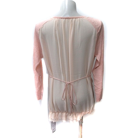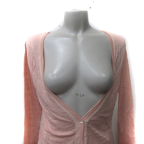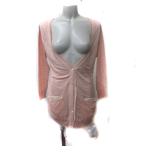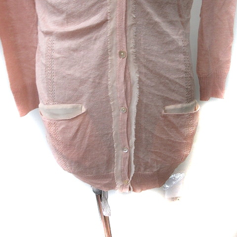 未使用品 ジルスチュアート JILL STUART カーディガン カットソー 切替 シフォン シアー 長袖 麻 リネン M サーモンピンク /YI レディース