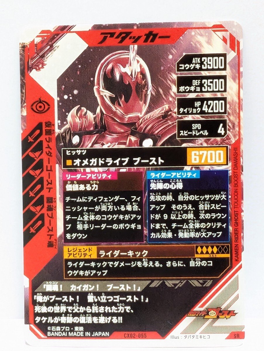 「仮面ライダーバトル ガンバレジェンズCX2弾 仮面ライダーゴースト 闘魂ブースト魂(SR CX02-055)」を出品します。「おまとめ」可能な方は4枚までミニレター送料85円でお取扱いできます。5枚以上の場合は定形郵便で送料別途計算となります。
