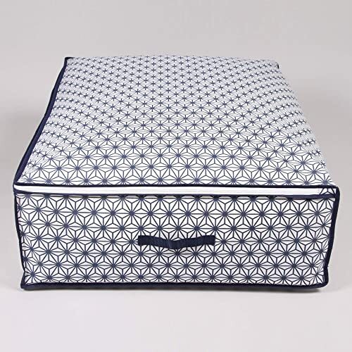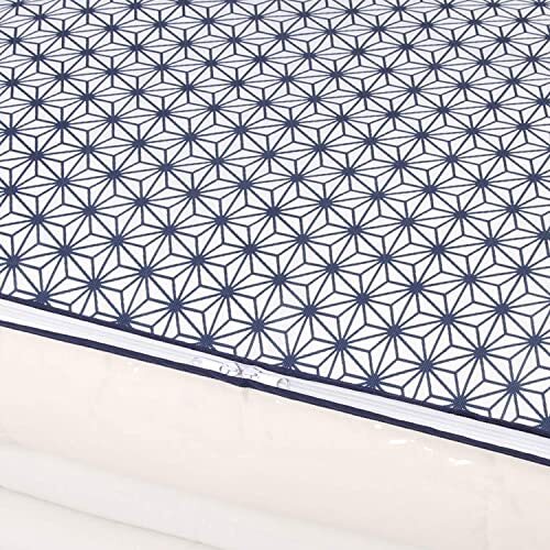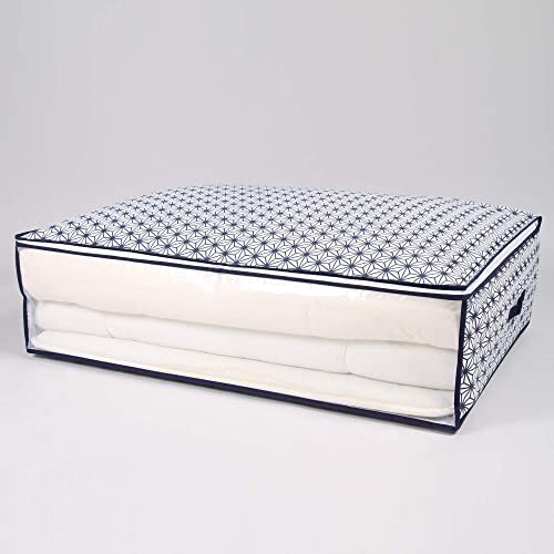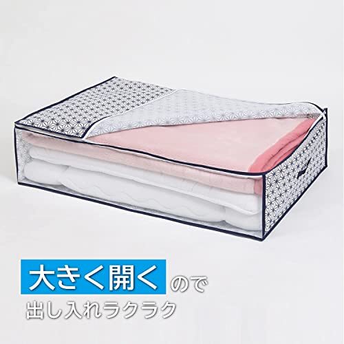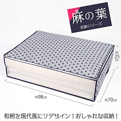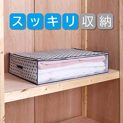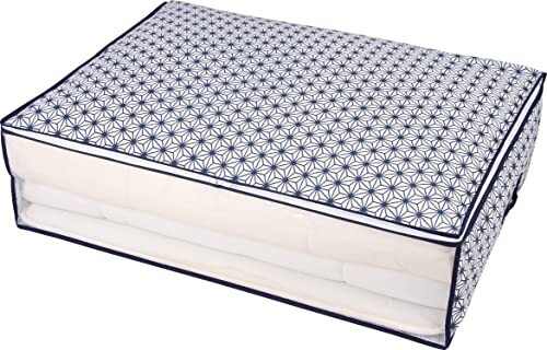 アストロ 収納ケース 敷布団用 シングルサイズ ホワイト×ネイビー 麻の葉柄 約W98×D70×H25cm 不織布 収納袋 透明窓付き 880-