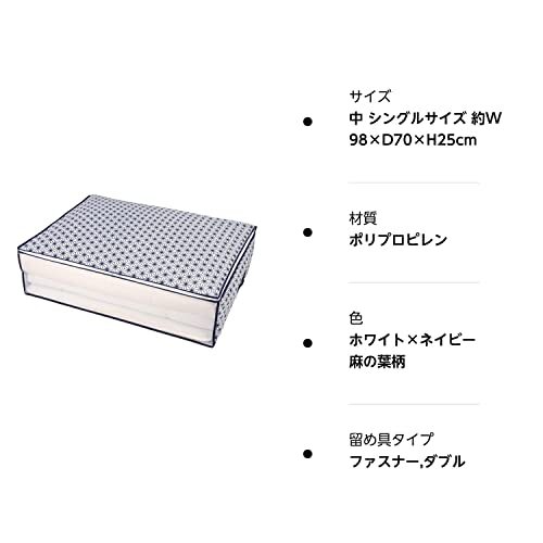 ・【商品仕様】:サイズ/約幅98×奥行70×高さ25cm、柄/麻の葉柄(ホワイト)、内容/1枚、収納目安/敷布団シングル1枚、材質/ポリプロピレン・ポリエチレン