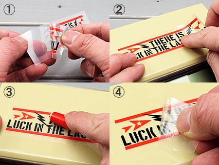 貼り方は台紙からステッカーの付いたフイルムを剥がし、所定の場所に貼り付け、フイルムの上から擦って転写させ、最後にフイルムを剥がせば出来上がり♪