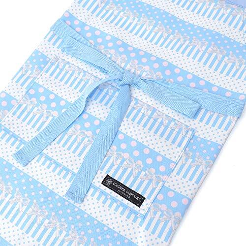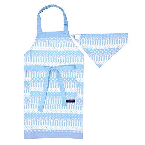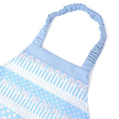 子供用 キッズエプロン 女の子 三角巾 セット 小学生 着脱簡単 100-120 ポルカドットとレースリボンに魅せられて(ライトブルー) カラフ