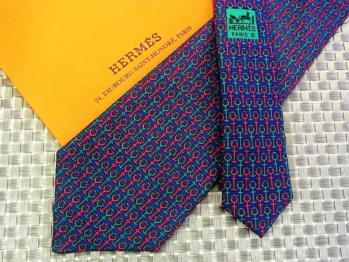 ♪39605D♪状態並品【錨 イカリ 柄】エルメス【HERMES】ネクタイ