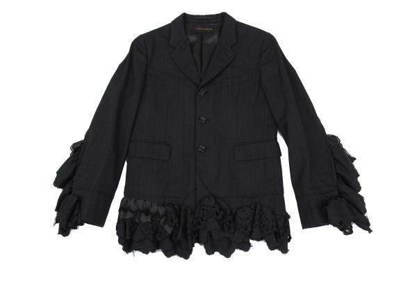 コムデギャルソンCOMME des GARCONS フリル装飾ストライプジャケット チャコールS |