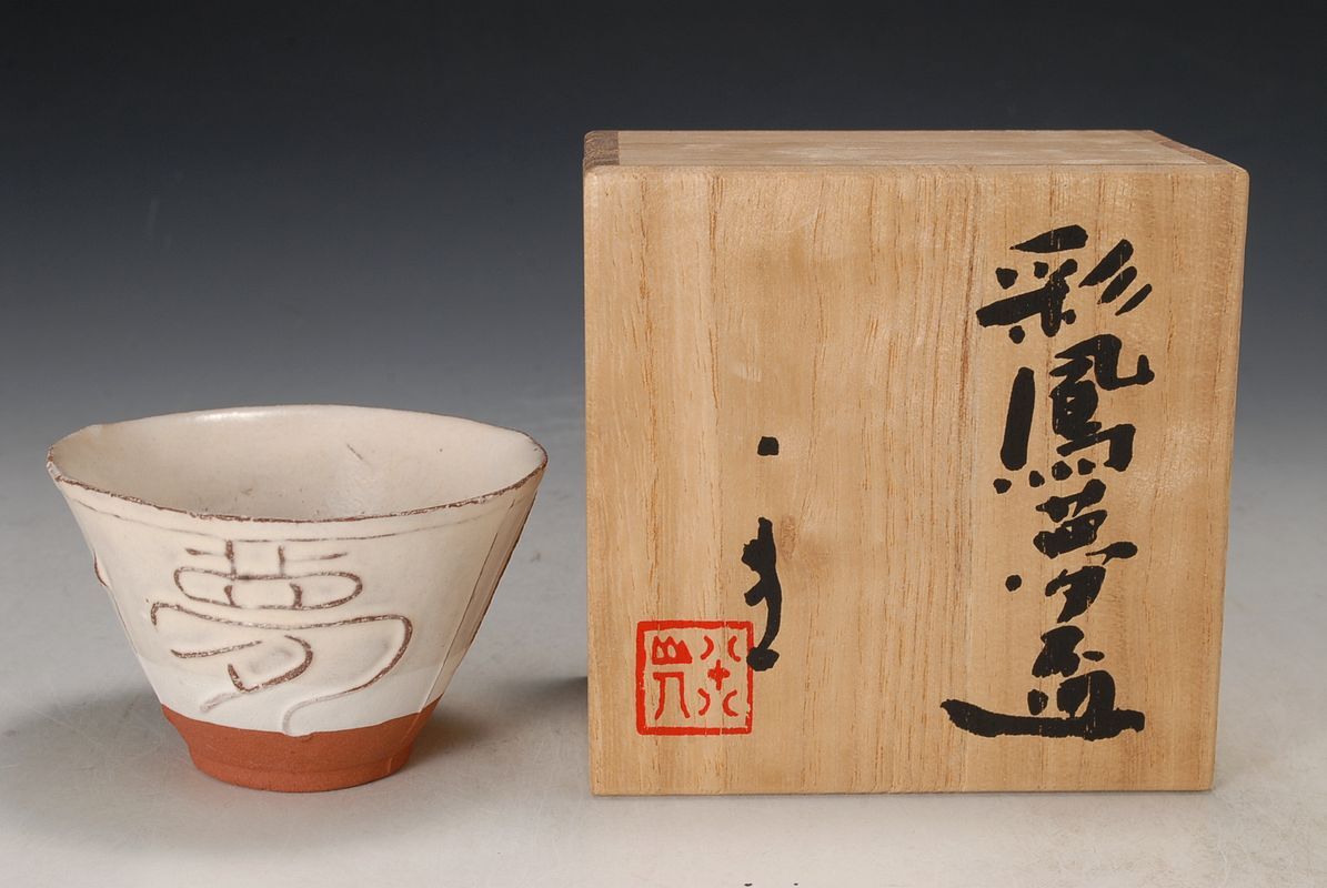 | 4327 名工 走泥社 八木一夫 彩鳳夢盃 ぐい呑 粉引 本物保障 | |