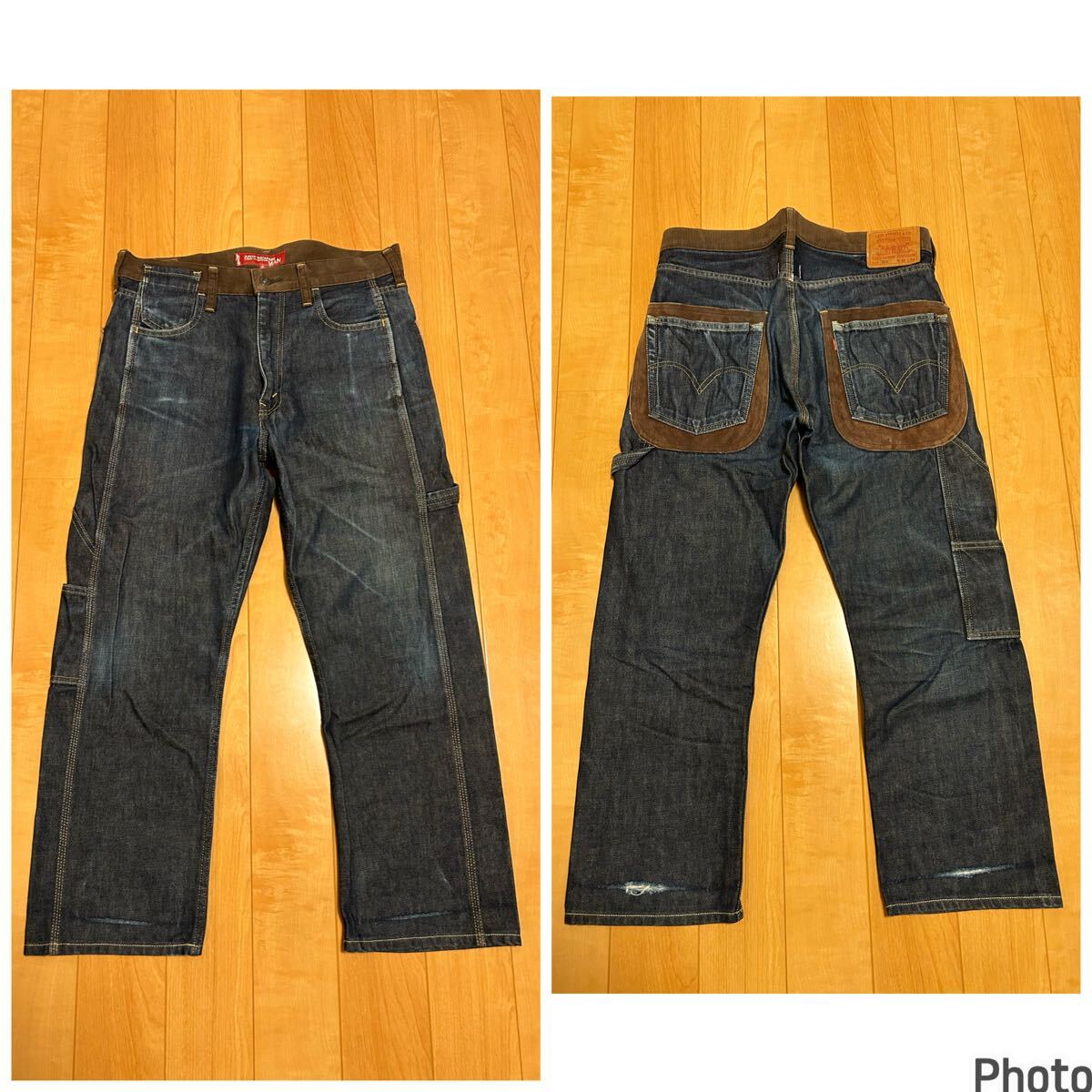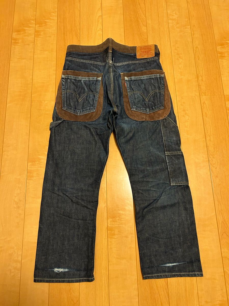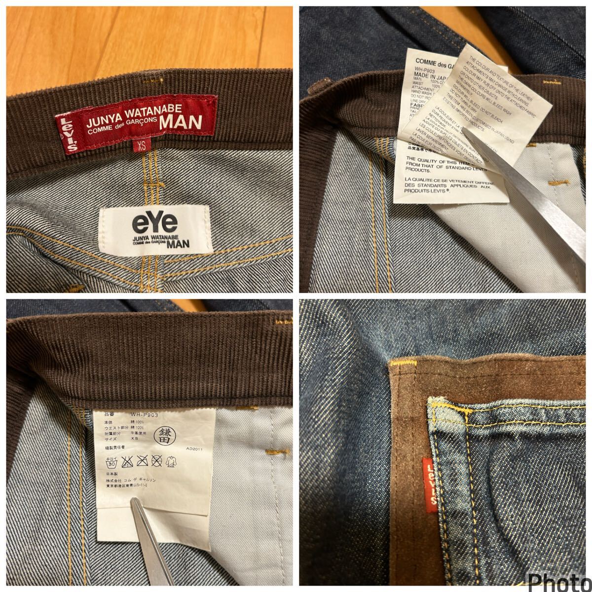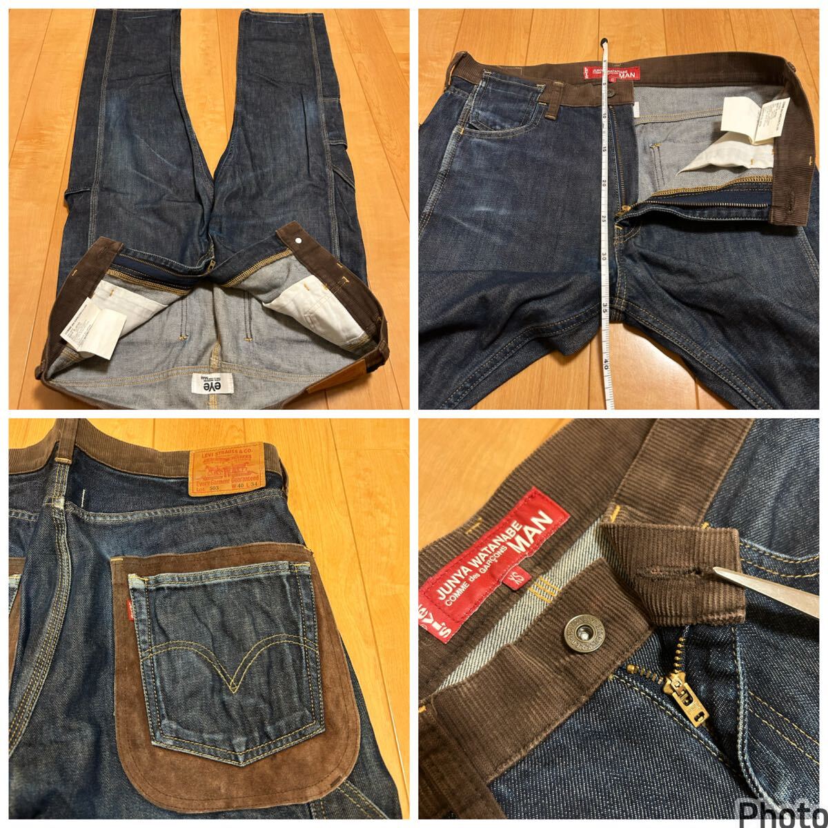 良品☆リーバイス×コムデギャルソン・ジュンヤワタナベ サイズXS.実寸82cm 牛革レザー使い.インディゴペインタージーンズ 3本針縫い 赤タブ
