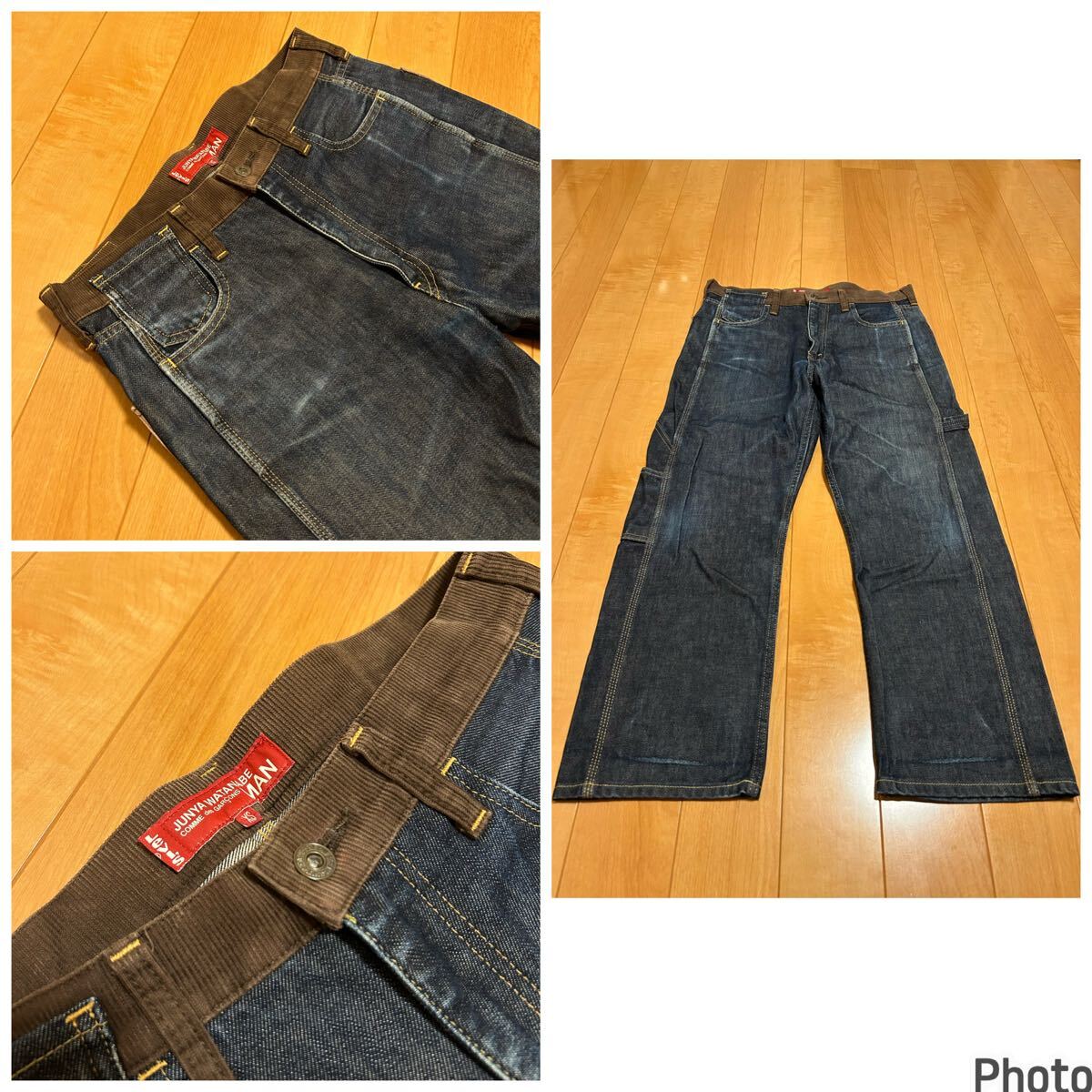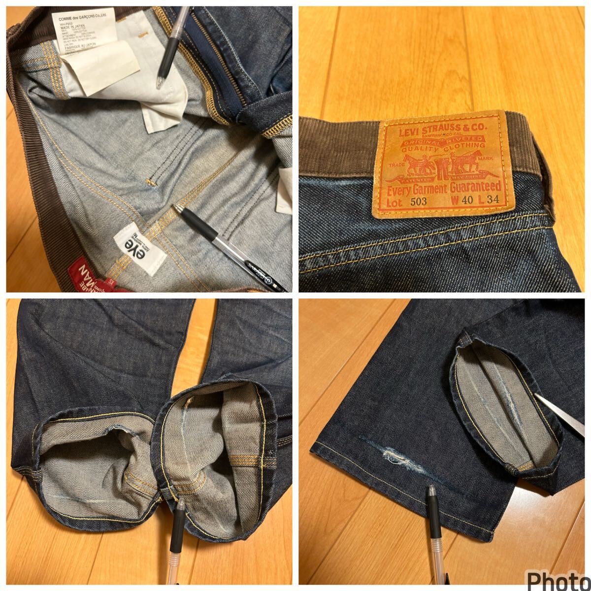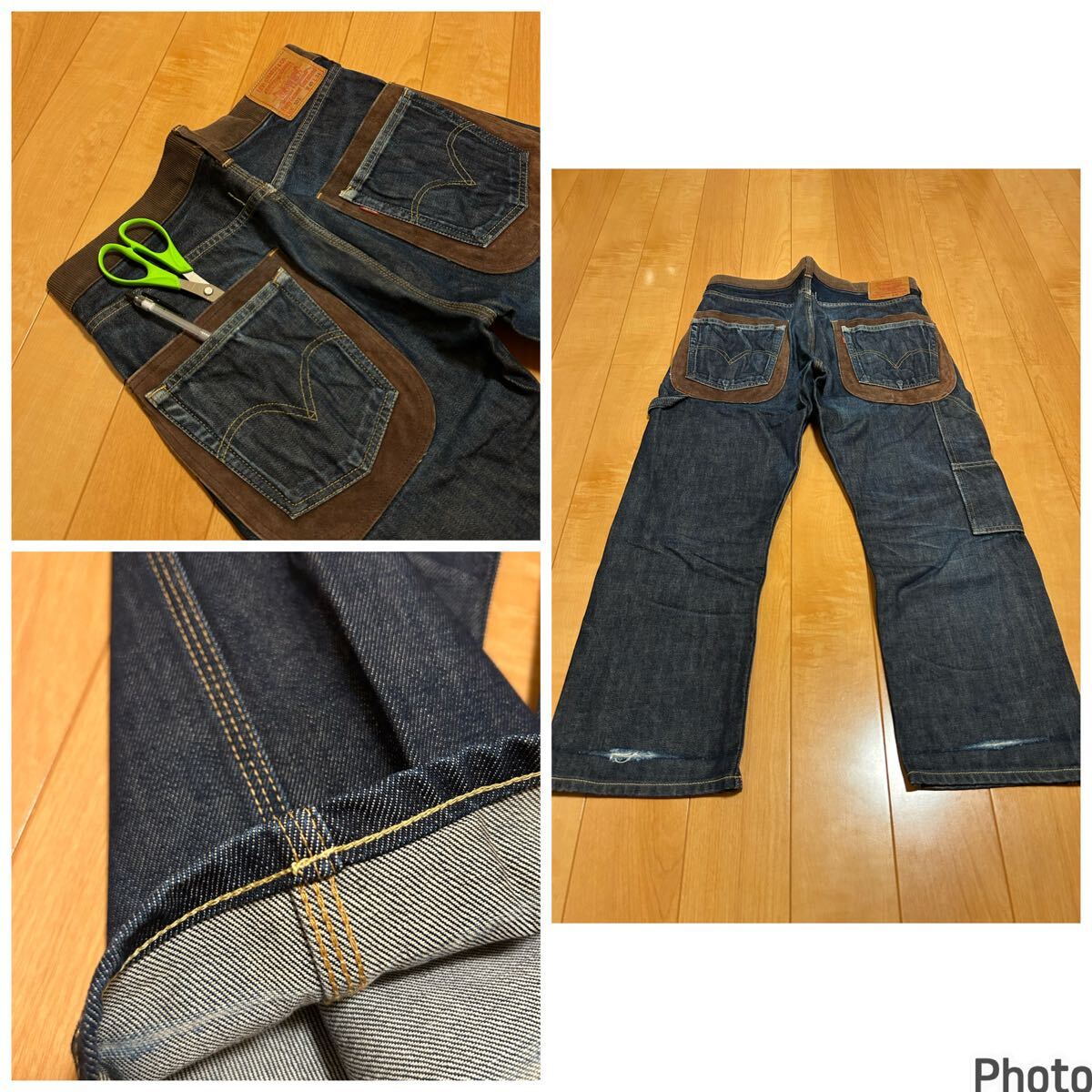 良品☆リーバイス×コムデギャルソン・ジュンヤワタナベ サイズXS.実寸82cm 牛革レザー使い.インディゴペインタージーンズ 3本針縫い 赤タブ